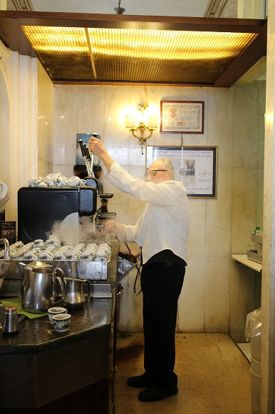 들어서자 진한 커피 향과 커피를 만들고 서빙하느라 분주한 에너지가 카페를 가득 채웁니다. 나폴리 특유의 수동 레버 커피머신에서 쉴세 없어 뿜어져 나오는 증기 너머로 장인의 포스로 커피를 뽑고 계시는 모습은 감동적이었습니다. 19년 전 아르바이트하던 카페에서 처음 들었던 바리스타, 그리고 이탈리아에서는 백발이 되어서 커피를 뽑는다는 이야기는 상상 속 동화 같은 이야기만 같았는데……그 백발이 되어도 커피를 뽑는 이가 제 눈앞에 서있었습니다.