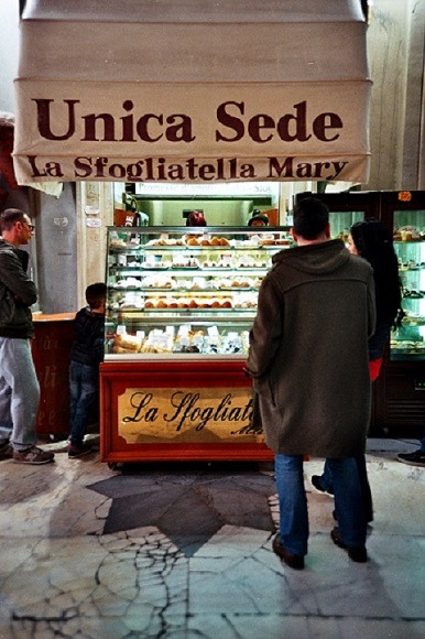 로마에서 2시간을 달리면 나폴리에 도착합니다. 일요일에 좋은 날씨까지 더해지면 도시는 인파로 북적입니다. 도착하자마자 우리는 갤러리아 움베르토 1세로 향합니다. 그곳의 작은 귀퉁이 조그만 제과점, La sfogliatella Mary에 발을 멈춥니다.