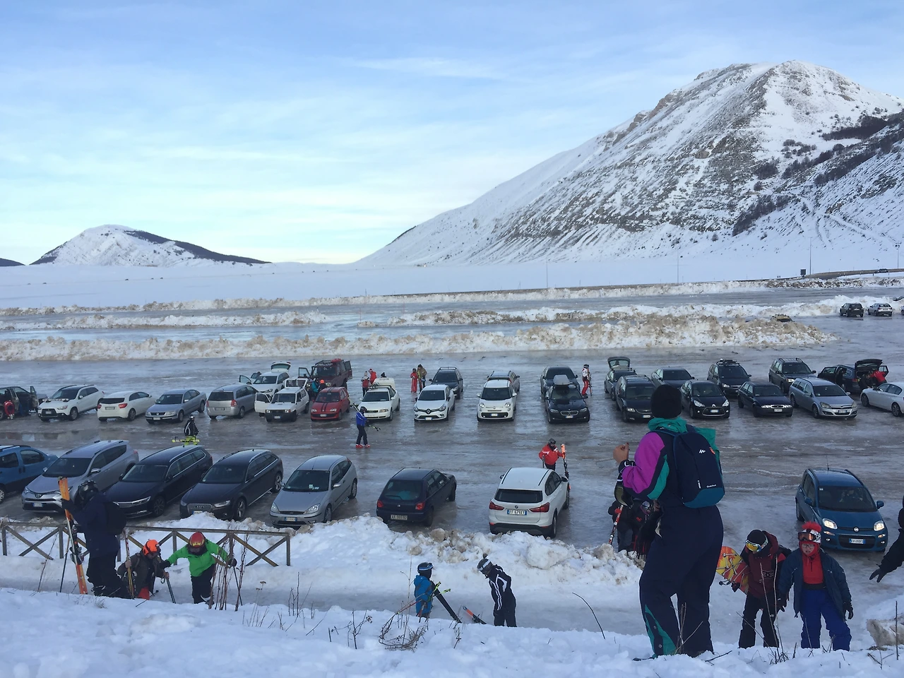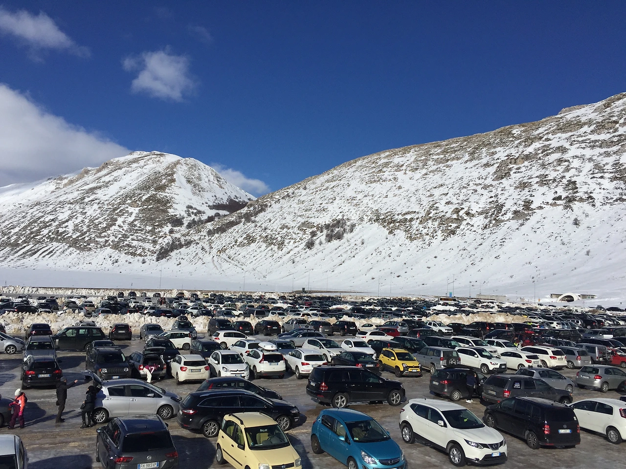친구들과 약속시간은 9시 반인데 도착하니 8시다. 눈길에 지례 겁을 먹고 너무 서둘렀다. 아니, 10년이 넘게 로마에 살면서 처음 오는 스키장에 우리가 들떠서 그랬나 보다. 소풍 전날 아이들처럼 설레어 그랬나 보다. 눈을 처음 만난 아이보다 15년 만에 스키장에 온 남편의 눈이 더 반짝인다. 꽁꽁 얼어붙은 주차장, 사람들 모두 약속이나 한 듯 옷을 갈아입고 있다.