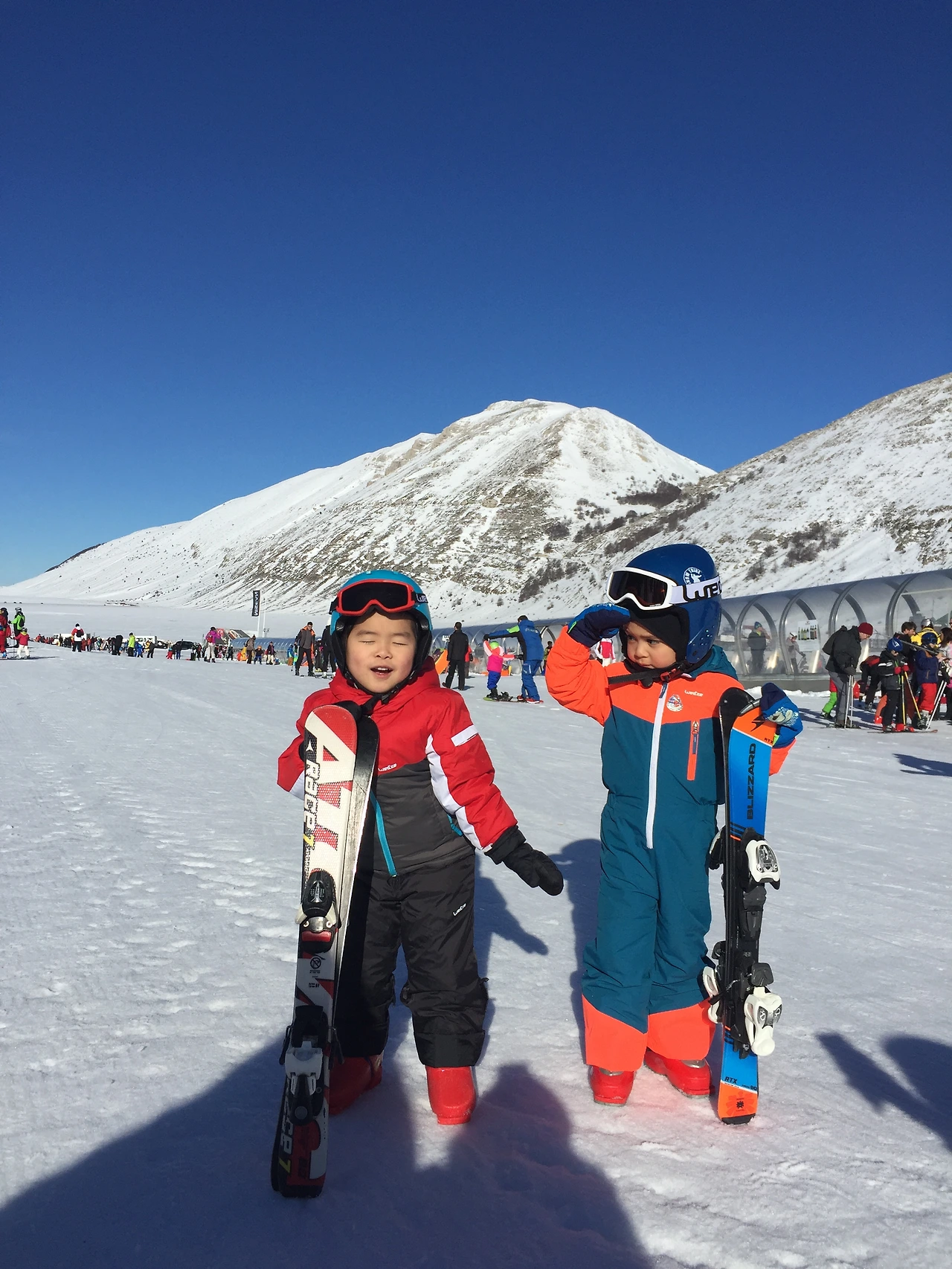 친구가 미리 예약해준 스키를 빌렸다. 흐리던 하늘이 순식간에 맑아졌다. 아이들은 아직 어리니 개인 교습을 받기로 했다. 이안이 또래 정도로 보이는 아이들이 능숙하게 스키를 타는 모습이 놀랍다. (한국에서 스키장을 많이 다녀본 것은 아니지만 ) 적어도 한국의 티브이에서의 본 스키장 풍경은 젊은 이들의 장소 같은 느낌이었다. 그런데 우리가 이탈리아에서 처음 만난 스키장은 그야말로 모든 세대를 아우르고 있었다.