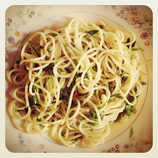 가장 단순한 파스타인 스파게티 알리오 올리오. 나폴리에선 꼭 말린 고추가 들어갑니다. 지중해 햇살에 새빨갛게 말려진 페페론치노, 그리고 흥건하게 면을 감싸고 있는 올리브 유. 먹고 나면 입술 가득 올리브유로 번들거리게 되죠. 무나 밋밋하고 생각할 수 있지만 파스타 알단테 면의 맛을 느끼기엔 가장 완벽한 파스타입니다. 가장 간단한 조리법의 파스타라고 할 수 있음에도 결코 단순하지 않은 맛을 선사하는 파스타입니다.