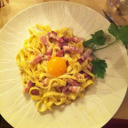이탈리아로 여행을 오는 여행객들이 가장 경악하는 파스타가 까르보나라입니다. 한국에선 크림 파스타의 대명사로 알려져 있는 있는 데다가 이탈리아 레스토랑의 대다수의 메뉴 판이 영어 표기가 거의 되어 있지 않은 터에 가장 낯익은 카르보나르를 주문하게 됩니다. 그런데 문제는 전통 카르보나라에는 크림이 들어가지 않는 데다 소금에 절인 관찰레(Guanciale, 돼지의 턱살이나 볼 살을 소금, 설탕, 향신료 등으로 절여 두고 먹는 저장식품) 혹은 판체타가 (pancetta, 돼지 뱃살을 소금에 절여서 만드는 저장식품으로 베이컨과 유사하나 조금 더 두껍습니다.) 들어가기 때문에 처음 접하는 분들껜 상당히 짜고 느끼하다고 느낄지도 모릅니다.
