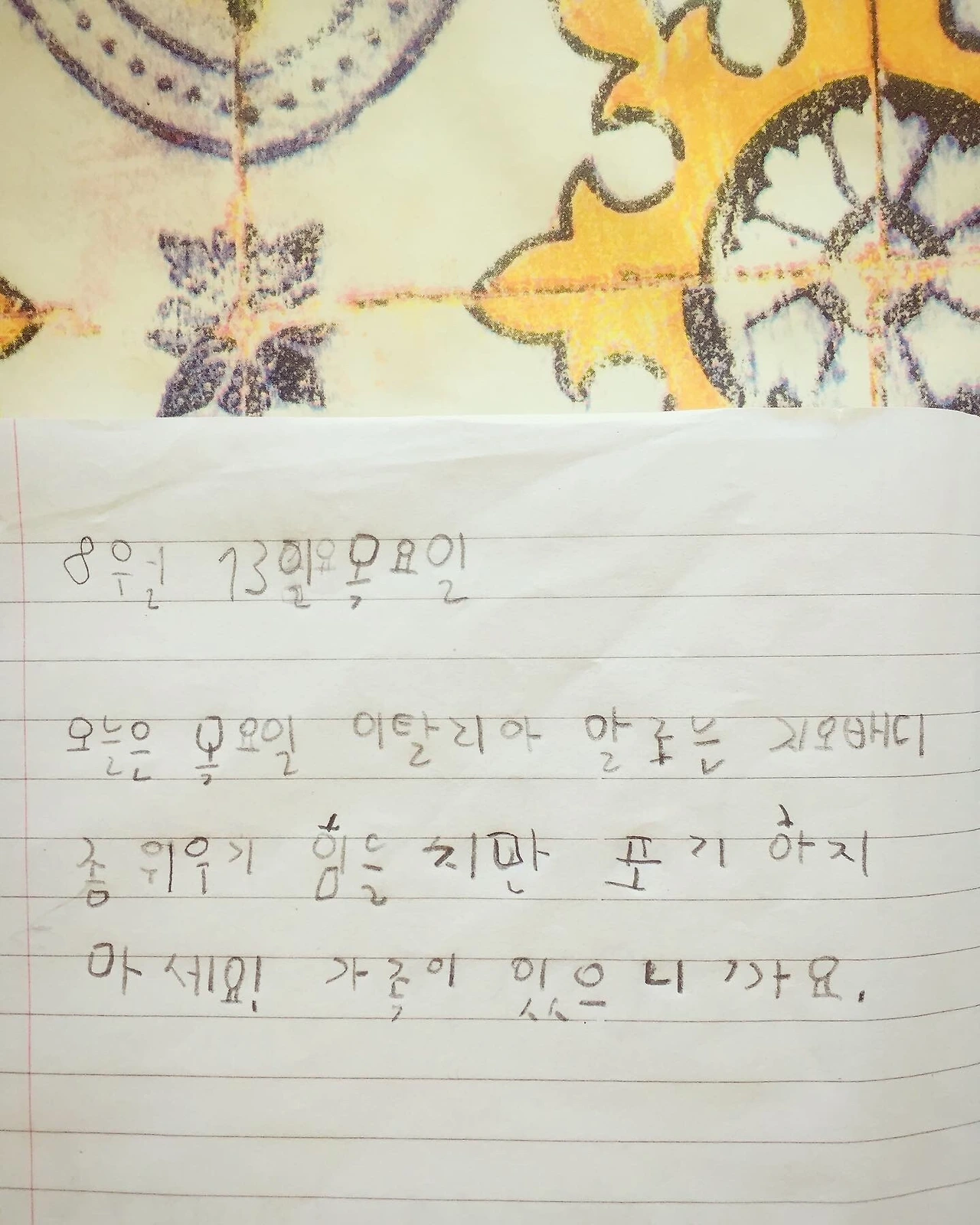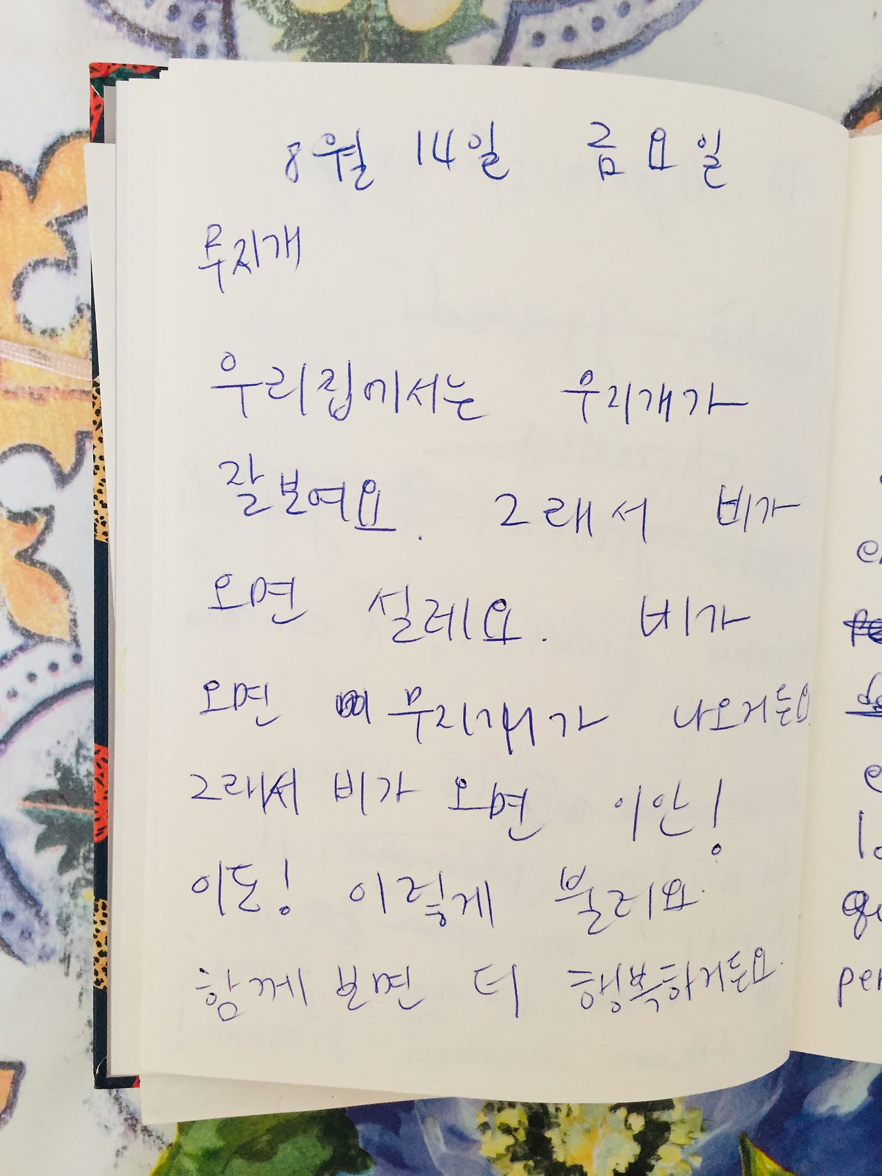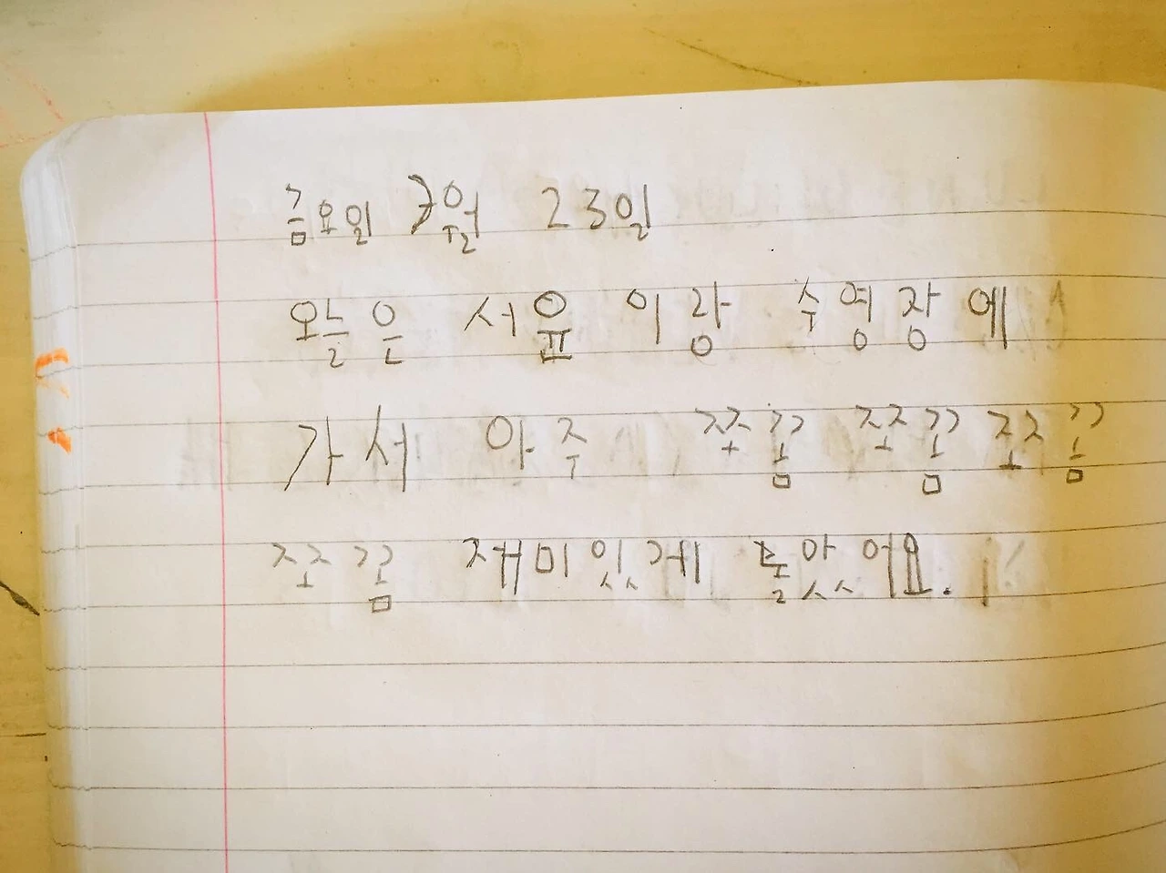이중언어의 균형적 발전을 표방한 일기 쓰기에는 다른 이유가 더 있었다. 온라인 수업 숙제에 일주일이 나왔는데 아이가 아무리 설명을 해도 요일을 이해 못했다. 이게 다 코로나 때문이다. 월요일엔 학교를 가고 수요일엔 오후 수업까지 하고 토요일엔 한글학교 일요일엔 성당 얼마나 설명하기 쉬운가!!