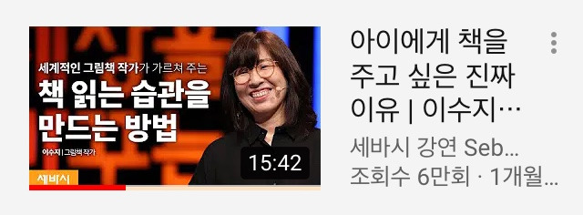 그러다 떠올랐다. 며칠 전 보았던 유튜브 강의에 이수지 그림책 작가가 나왔다. 거기서 이런 말이 나왔다.