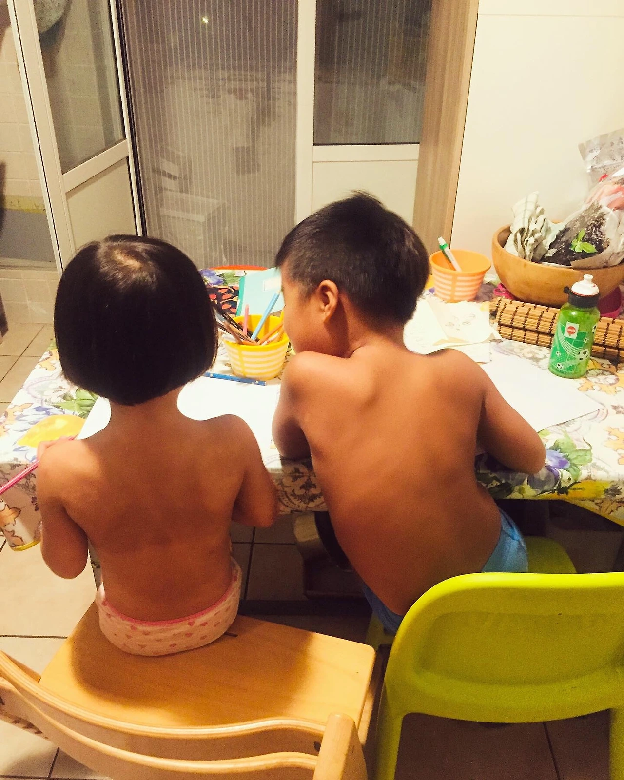 신기한 일이 일어났다. 오빠가 일기를 쓰는 시간이면 놀아달라고 때를 쓰던 아이가 스스로 곁에 와서 앉았다.