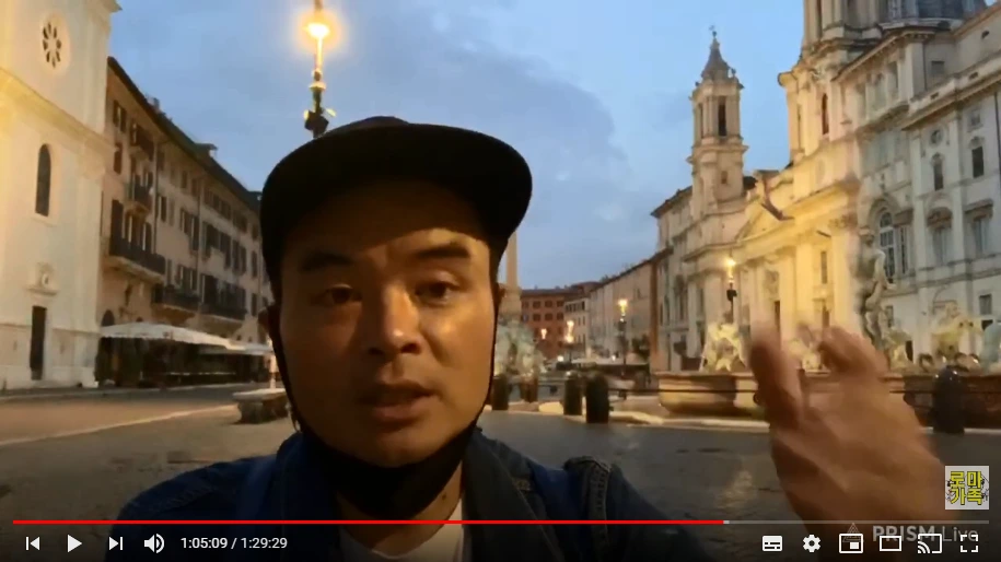 그는 집을 나섰고, 로마의 휴일의 앤 공주의 발자취를 따라 로마의 골목골목을 걸었다. 라이브 채팅창은 새벽 2시의 한국은 물론 미국 프랑스 이탈리아 독일에서 함께하는 이의 대화로 채워졌다. 각자의 시간과 공간에서 로마를 만나고 있었다. 우리가 이토록 아련하고 그립게 바라보고 있다는 걸 로마는 알까?