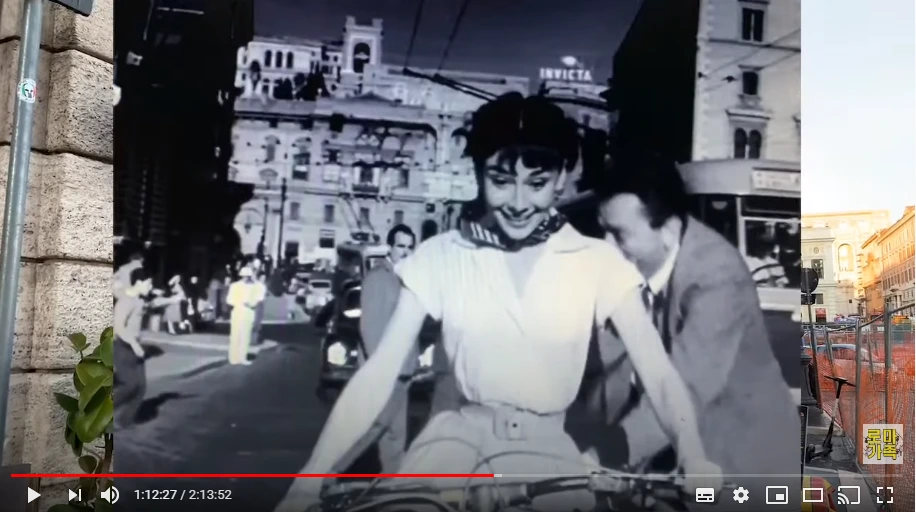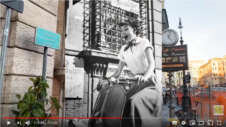 코로나 이전으로 절대 돌아가지 못할 거라는 것을 인지하고 모두가 받아들이고 있는 지금. 마스크를 쓰는 일이 더 이상 이질적으로 보이지 않게 된 현재가 무색하게 로마는 흑백의 영화 속 모습을 그대로 간직하고 있었다. 해맑다 못해 바라보는 이조차 기분 좋아지는 웃음의 오드리 햅번 너머에 자리한 쇠 찰상의 창문이 여전히 그 자리에 있었다.