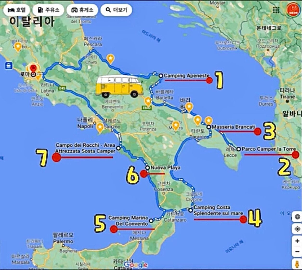 우리의 캠핑카 이탈리아 남부 횡단 여행이 시작된다는 뜻이다.