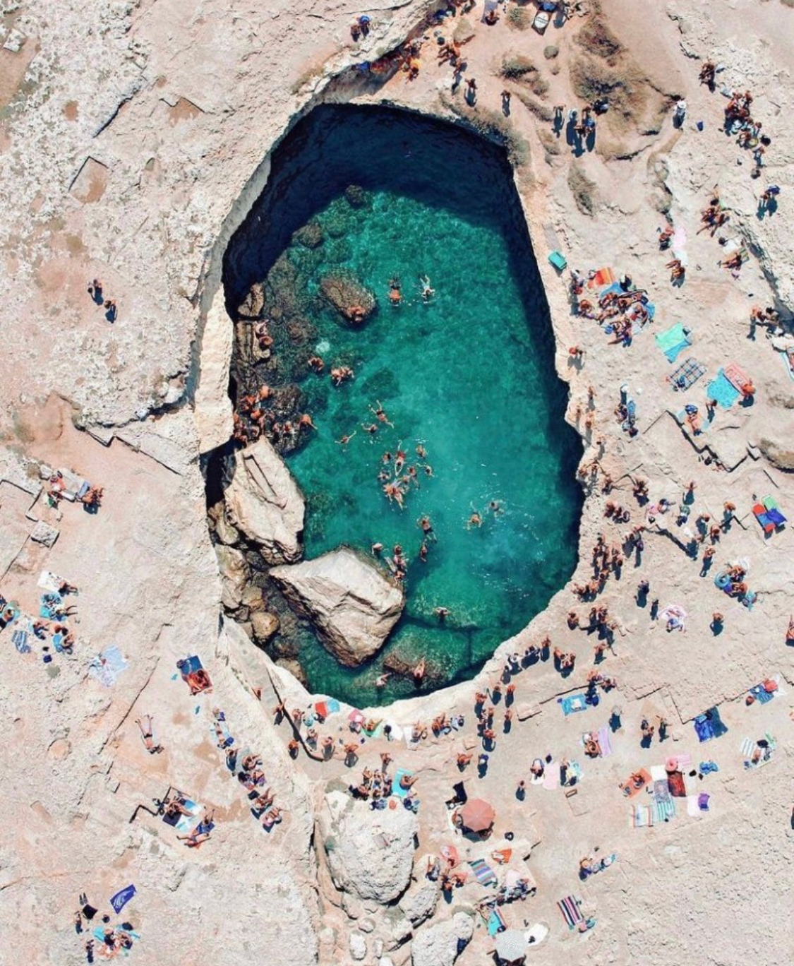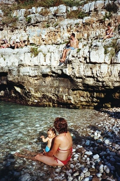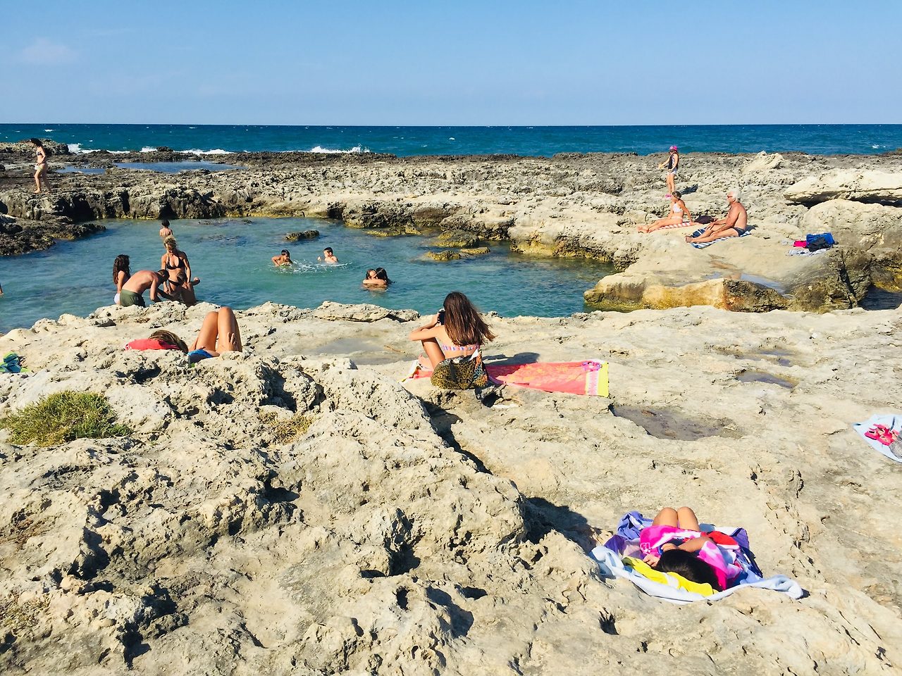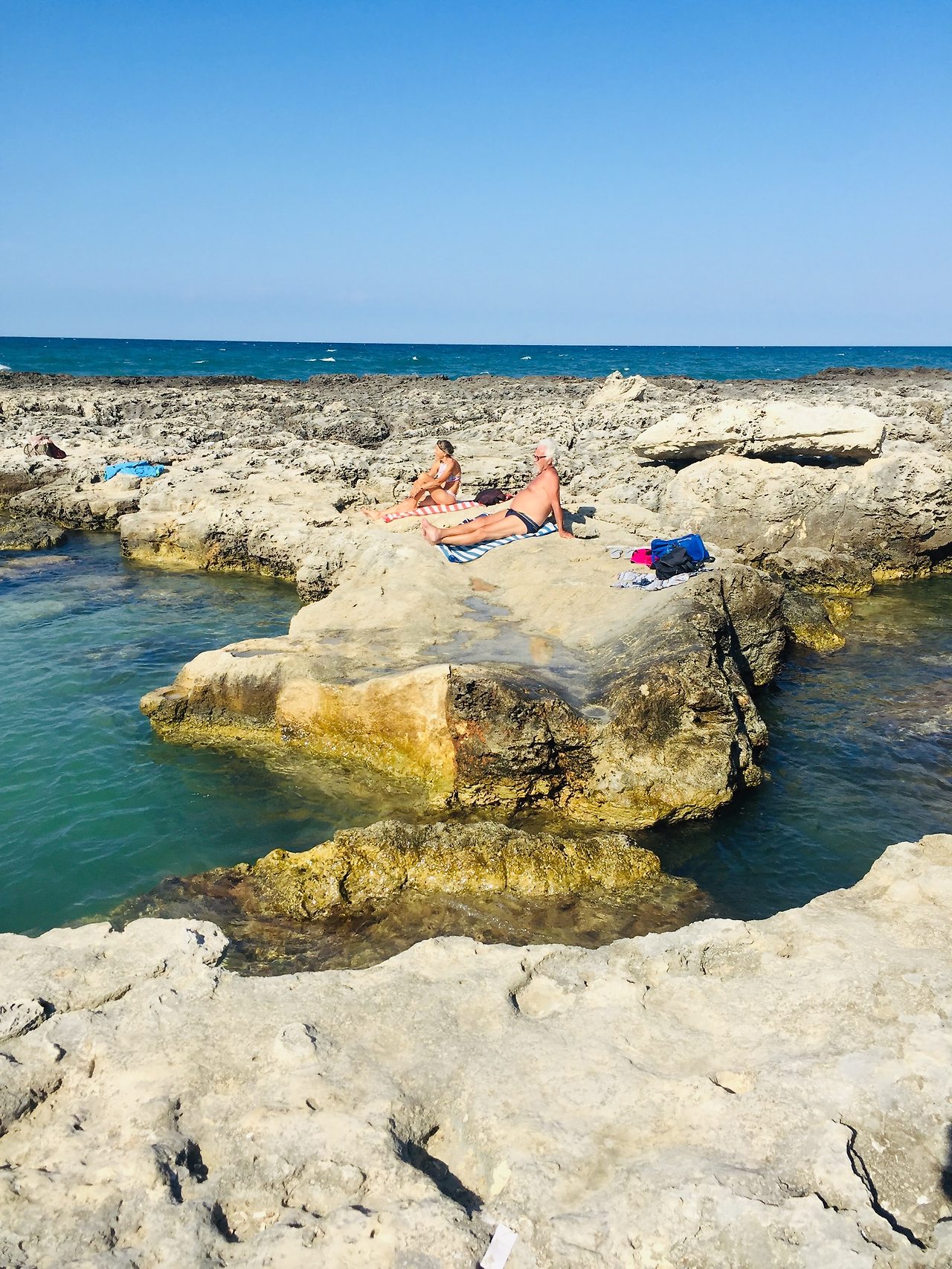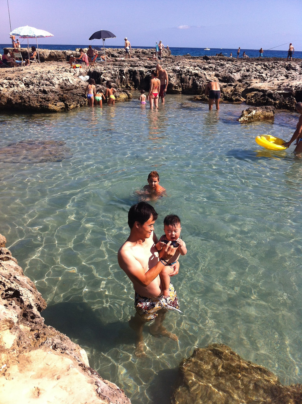 계획한 바다는 바위 해변에 자연적으로 뚫린 구멍에 바닷물이 들어오는 천연 수영장, grotta della poesia이었다. 그런데 내비게이션이 정확하지 않아 (그 당시엔 구글 맵이 아니라 톰톰이라는 자동차에 탈 부착한 내비게이션이었다.) 근처의 전혀 다른 해변에 도착하고 말았다. 그 해변을 사람들은 천연 대중목욕탕, spiaggia di Pascariello이라고 불렀다. 해변에 도착하니 왜 이곳을 목욕탕이라고 부르는지 알 것 같았다.