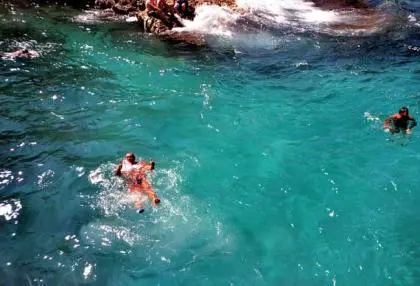 이곳의 구멍은 세 곳이었는데 세 군데 모두 깊이가 달랐다. 가장 깊은 곳은 어른의 키보다 깊었고 중간 깊이는 어린이가 설 수 있을 정도, 마지막 가장 얕은 곳은 무릎 정도였는데 물이 얕아 태양에 의해 적당히 데워져 있었다. 사람들은 그 자리를 온탕이라고 했다. 바람이 불어 파도가 높았지만 구멍 안의 바다는 고요했다. 막 돌이 지난 아이에게도 우리 부부에게도 최적의 장소였다. 가장 깊은 구멍에서 소년소녀들이 다이빙을 했다.