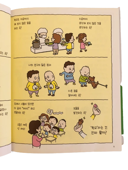 내가 책에서 봤는데, 학교는 친구와 내가 닮은 것을 찾는 곳 이래.