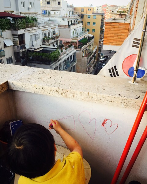 넌 한국사람이기도 하고 이탈리아 사람이기도 해, 라는 대답해주는 것이 맞는지도 모르겠고 솔직하게는 나 자신이 아이를 그렇게 생각하고 있는지도 모르겠다. 어쩌면 아이를 이탈리아에서 낳고 이탈리아에서 키우며 이탈리아 교육을 받게 하면서도 아이는 확고한 한국인이라는 정체성을 가지고 한국을 자신의 나라라고 여기며 자랄 거라고 생각했던 거 같다. 물론, 결국은 아이 자신이 자라며 스스로 균형을 잡아가겠지만 학교에서 배워온 이탈리아 국가를 재미있어하며 부르는 아이를 보면(생각해보니 아이가 애국가는 들어본 적이 없는 거 같다.) 마냥 귀엽다가도 뭐라 정확히 말하기는 힘든 감정에 휩싸이기도 한다.