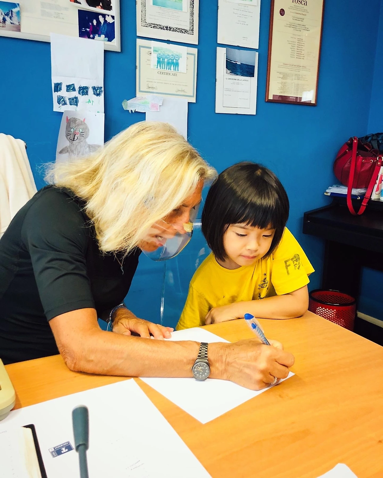 의사 선생님과 만나서 검사를 하는 과정에서 선생님이 아주 사소한 팁을 주자 이내 이도의 발음이 달라졌다. 아무리 '텔라'를 '스텔라'라고 발음하라고 이야기해도 고쳐지지 않더니 선생님이 이렇게~~ 해봐라고 하자 순식간에 드라마틱하게 교정되었다. 나는 물에 뜨려면 '다리를 움직여야지!'라고 말하고 있었고 선생님은 물에서 뜨려면 몸에 힘을 빼고 다리를 펴고 이렇게 움직여보면 어때?라고 정확한 지시를 해준 샘이었다. 검사를 진행하면서 내가 생각한 것보다 더 아이의 이탈리아 말에 많은 오류가 있음을 알 수 있었다. 또한 이도뿐 아니라 이탈리아의 많은 아이들도 겪는 오류라는 것을 알게 되었다. 일반적으로 겪는 문제였기에 감사하게도 이탈리아는 'logopedia'라고 하는 언어 치료가 발달해 있었기에 의사 선생님을 추천받고 정보를 구하는 것이 어렵지 않았다. 교정이 진행되는 50분에 가까운 시간 동안 아이는 진지하게 집중했고 스스로 변화되는 기분에 몇 번이나 눈이 반짝였다. 즉시 느껴지는 성장의 기쁨이라니 굉장하지 않은가! 2주에 한번 치료를 해도 괜찮지만 습득이 빠르니 올해는 1주에 한번 치료를 해보는 걸로 결정을 했다.
