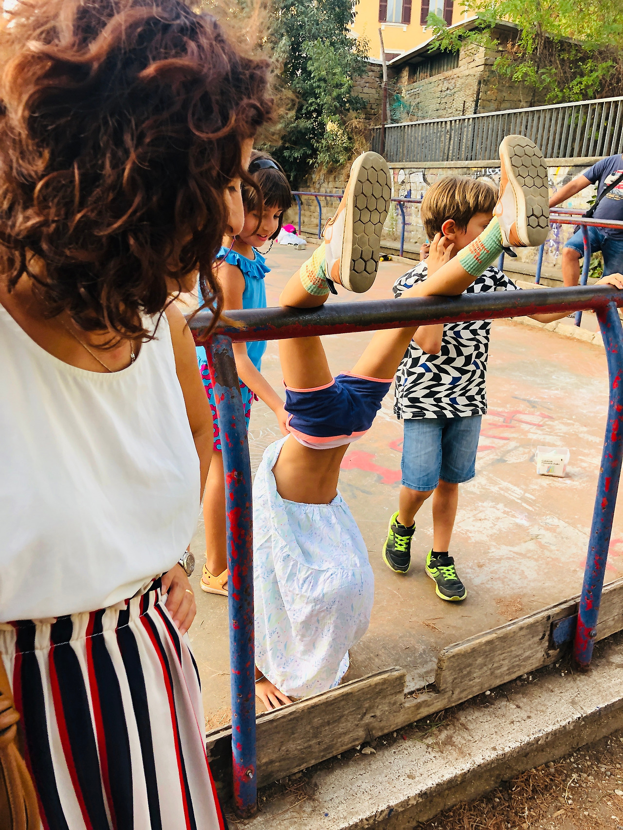 유치원에서 돌아오는 길에 한 무리의 이탈리아 사람들을 만났다. 축하하는 자리가 있었는지 무리 중앙의 여성의 머리에는 월계관을 놓여있었고 가슴엔 한가득 장미꽃이 안겨 있었다. 사람들은 연신 웃으며 대화했다. 그들 곁을 지나는데 이안이가 그들에게 외쳤다.