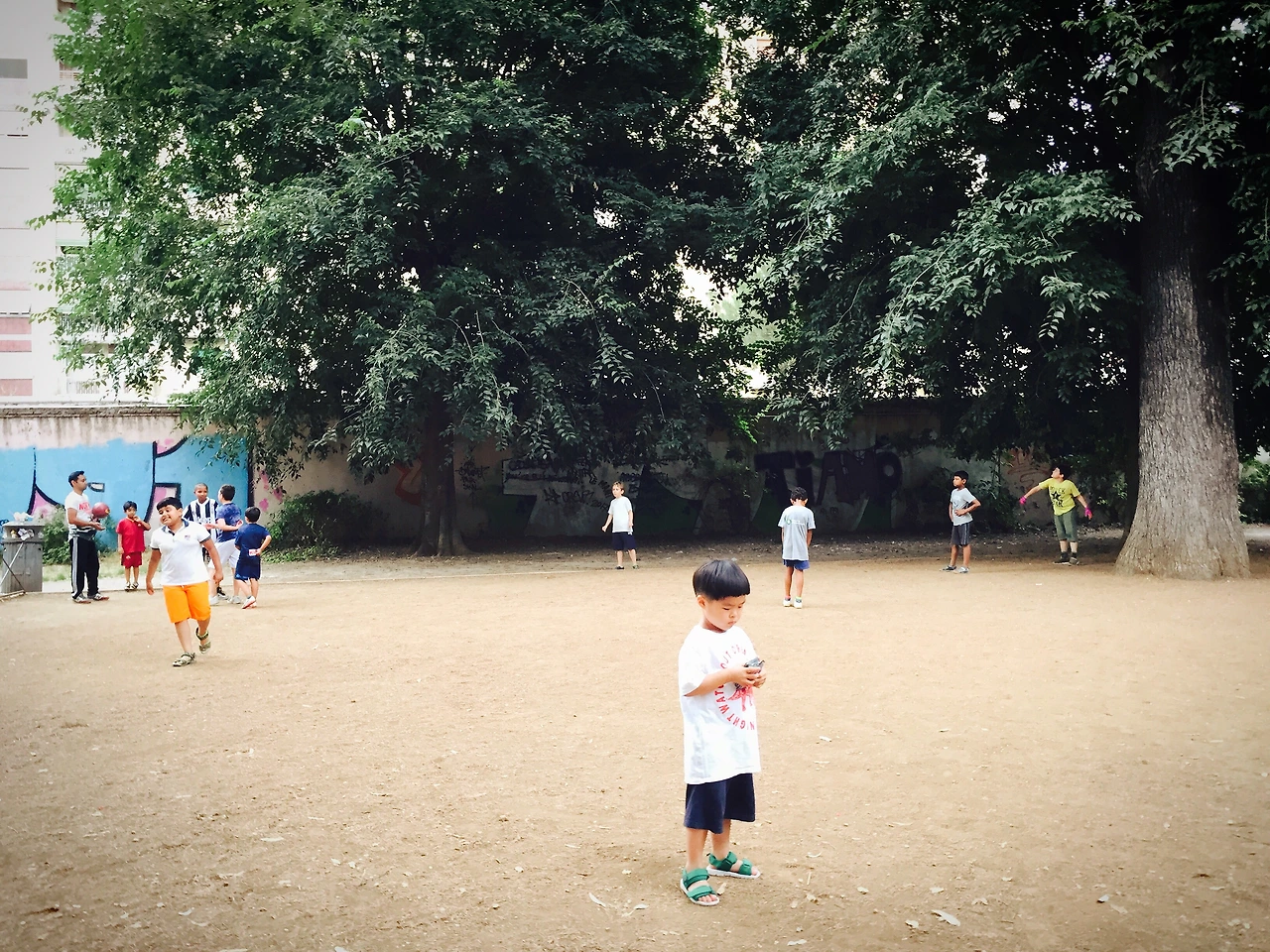 축구를 좋아하는 것이 성향을 문제일 수도 있지만 결국은 얼마나 노출되었는가를 무시할 순 없겠다. 공룡 덕후 오빠 덕에 공룡만 보면 좋아하는 우리 둘째를 보아도 말이다. 이탈리아 친구들을 만나기 전까지 한 번도 축구를 본 적 없는 아이가 흥미를 가지기는 쉽지는 않겠지. 그래도 다들 저렇게 놀면 당장 놀고 싶은 것이 있어도 좀 참여를 해주면 엄마 마음이 좋을 것을 아이는 그게 쉽지 않다. 어쨌든 친구들과 자신이 재미있어하는 것을 공유하고 싶은 마음도 이해 못하는 것은 아니니 괜히 아이를 바라보는 마음이 짠해진다.