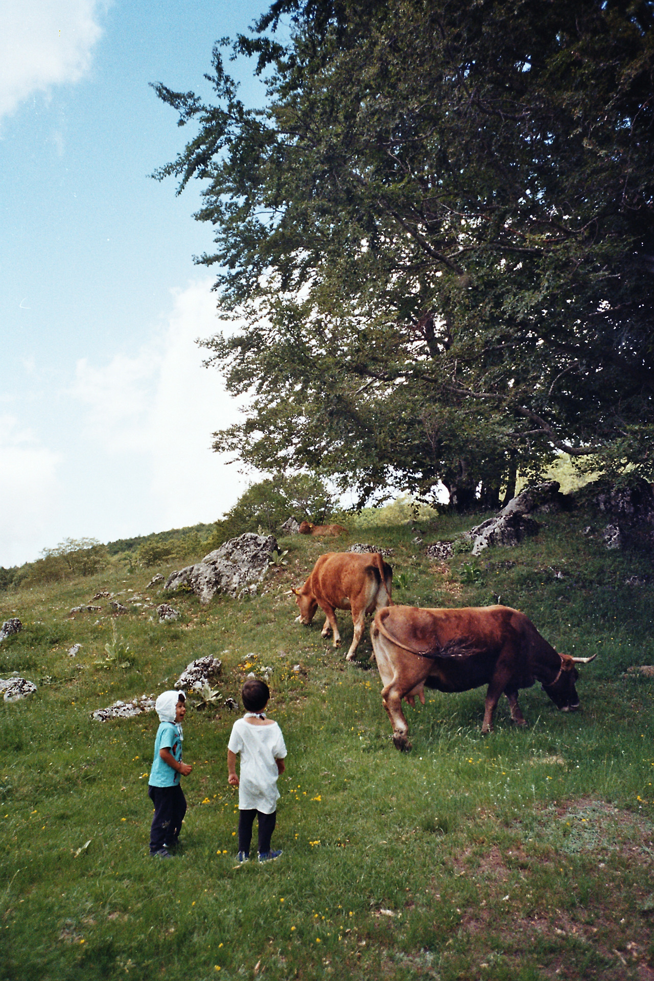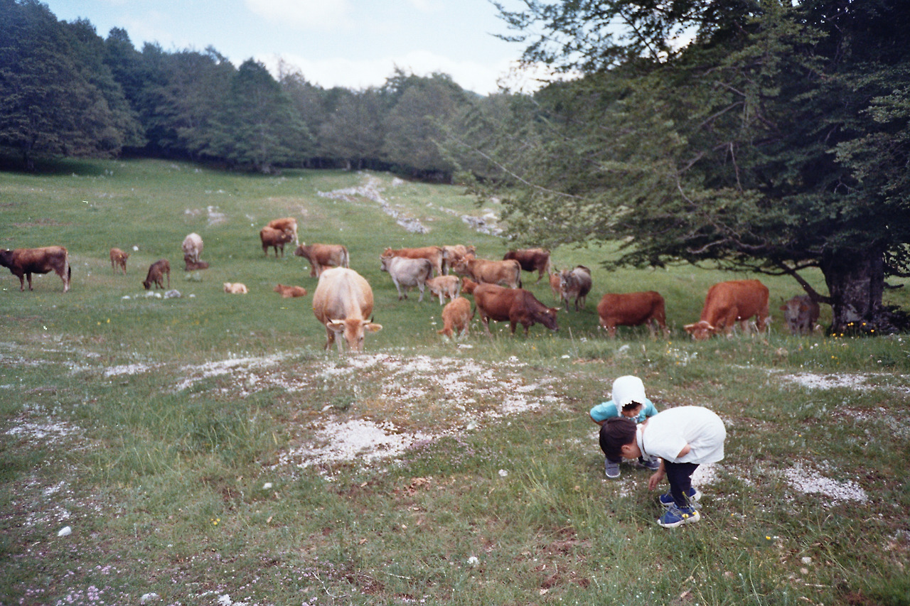 일행을 뒤로하고 아이 둘의 손을 잡고 탐험을 떠났다. 세상에, 두세마리 정도인 줄 알았는데 수십 마리의 소들이 모여있었다. 아이 둘이 풀을 뜯어 손을 내미는 모습이 사랑스럽다. 마치 반지 원정대 같다. 미지의 세상을 향해 두렵지만 길을 나서는. 뒤돌아보니 일행이 어느새 저 멀리 점처럼 보였다.