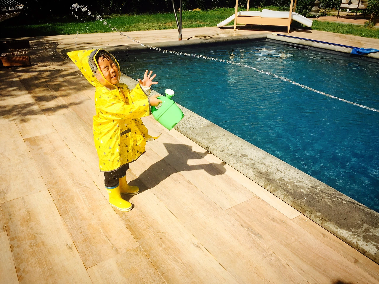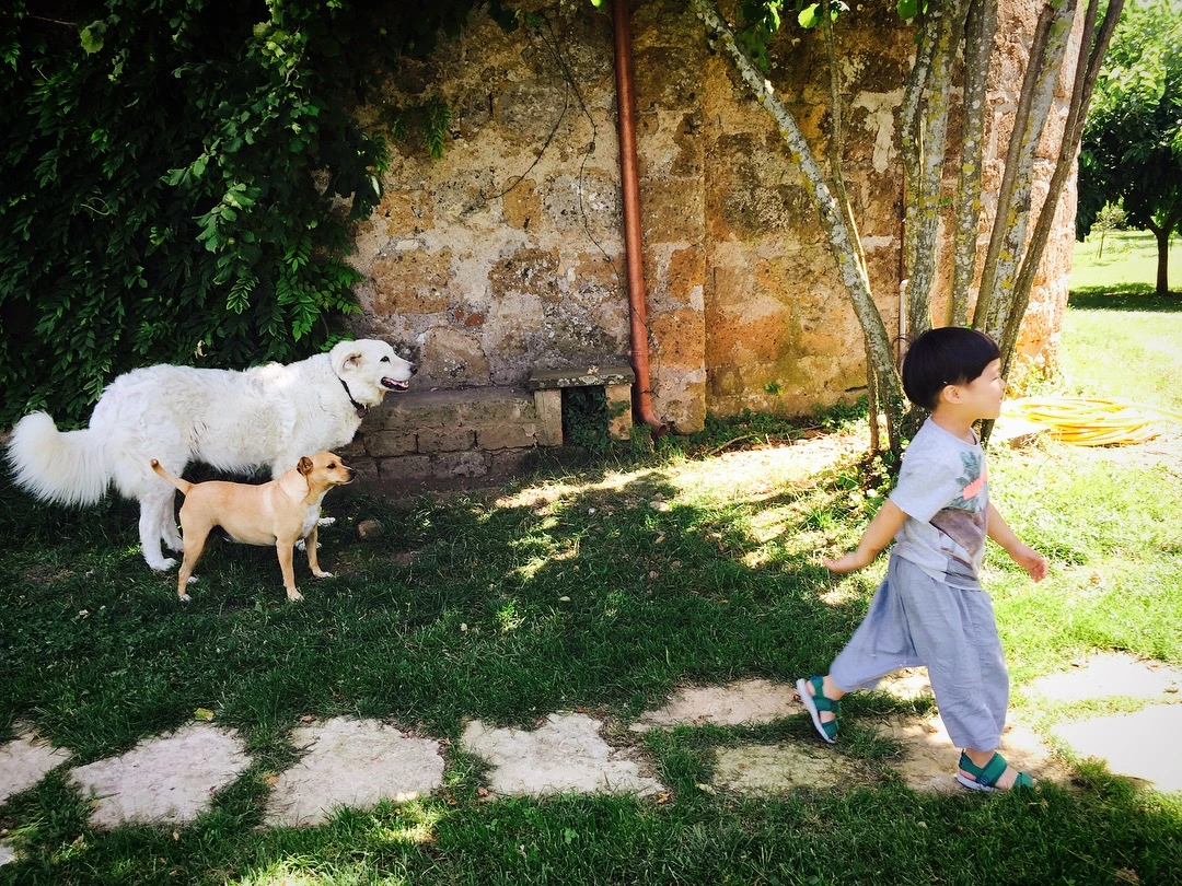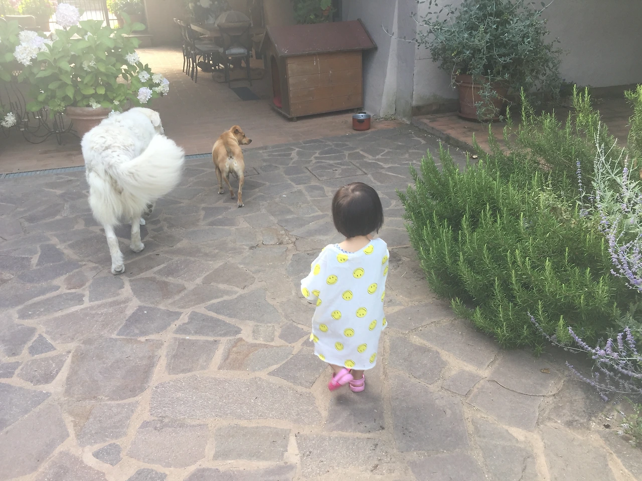 아이는 머무는 동안 부블리와 파리와 아랫도리를 벗어두고 뛰어다녔다. 개들과 뛰며 같이 싸고 노을이 질 때면 나탈리 할머니와 함께 정원에 물을 뿌렸다. 당시 아이는 여행 전 놀다가 손가락에 금이 가서 손에 깁스를 하고 있었음에도 손에 비닐을 씌우고 신나게 물놀이를 했다.