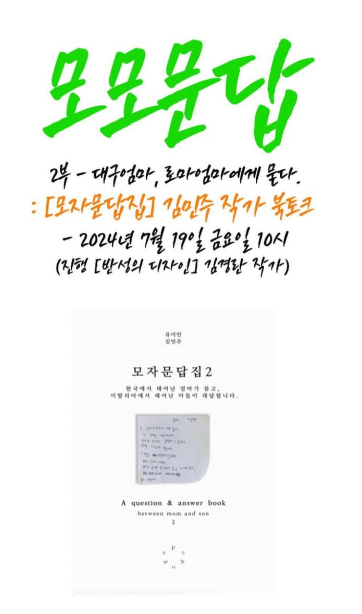 2024년 7월 [반성의 디자인] 김경란 작가 & [모자문답집] 합동 북토크 , 모모문답