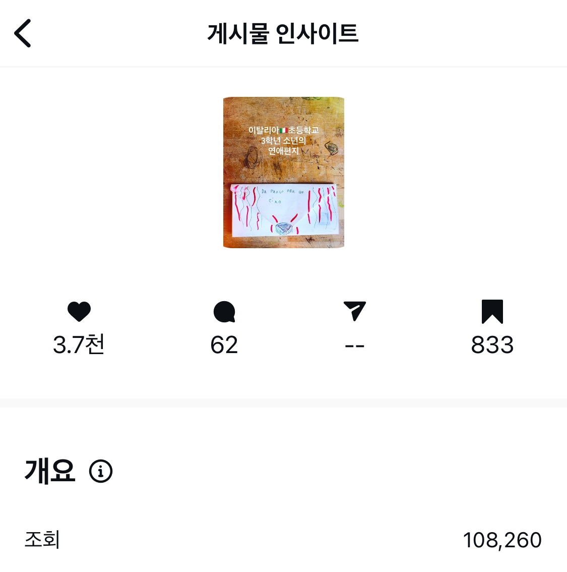 그리고 2024년 6월 한국으로 휴가를 떠나던 날, 비행기 타기 직전에 "이탈리아 고등학교 여름방학 숙제" 라는 1분짜리 릴스를 만들어 올리고 비행기를 탔다. 13시간의 비행 후 인천 공항에 도착했을 때, 그 영상의 조회수는 300만이 넘어가고 있었고, 팔로워는 2만명이 넘어가고 있었다. 그 영상은 2025년 6월 현재 509만뷰가 되었다.
