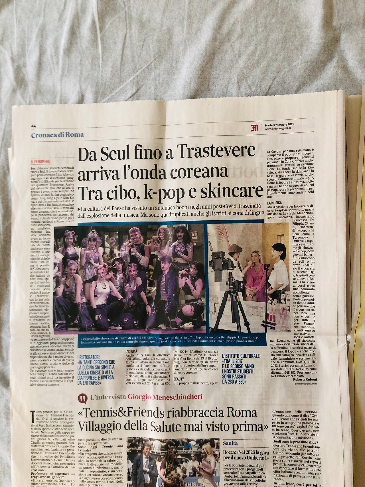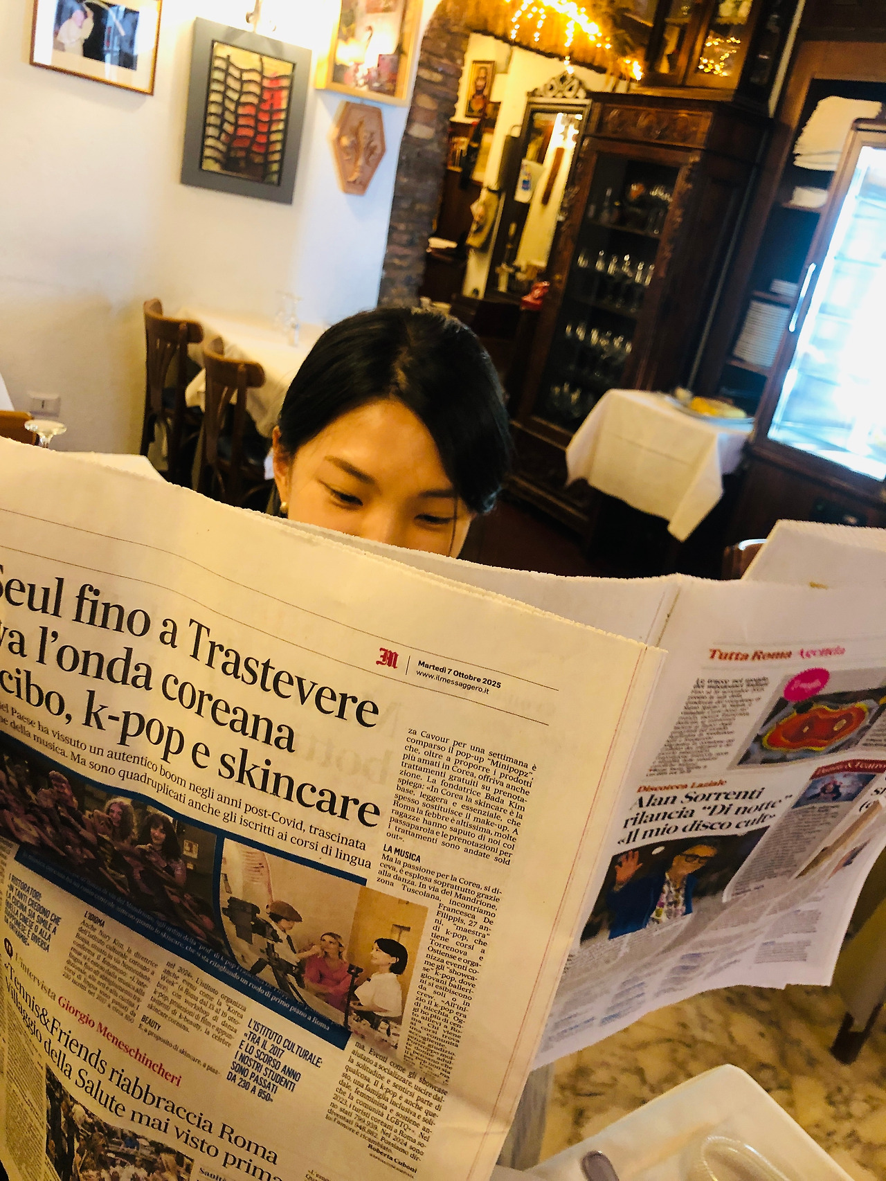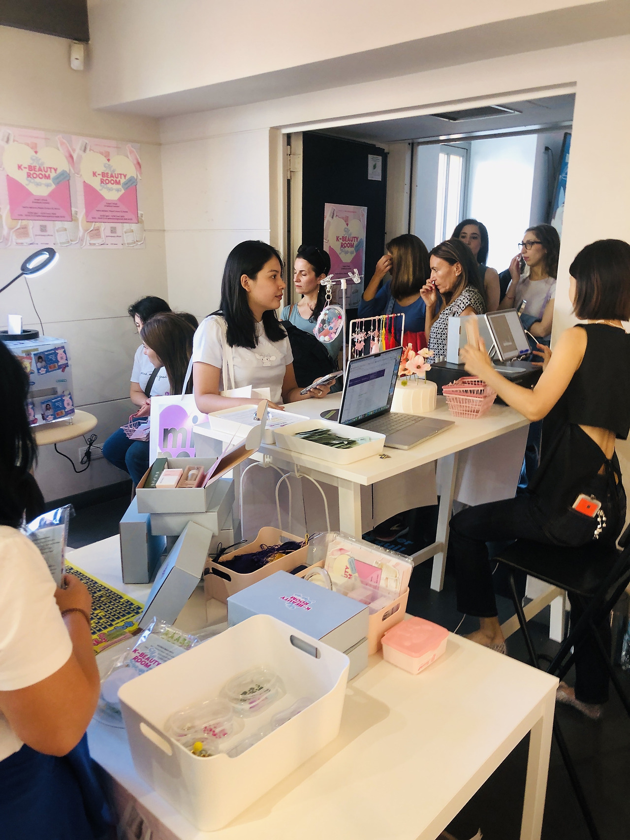 오픈 첫날이었던 수요일에는 인스타그램 광고를 보고 k 뷰티에 관심이 있는 사람들이 조금씩 방문하더니 점점 입소문을 타기 시작했습니다. 주말에는 행사장에 발 디딜 틈도 없이 사람들이 그야말로 들이닥치기 시작했고 이탈리아의 가장 큰 신문사 중 하나인 메싸제로( Messaggero)에서 인터뷰 요청과 로마의 가장 큰 방송 채널인 라이(RAI)의 저널리스트가 직접 방문해 스킨케어 서비스를 받았습니다. 방문하는 고객은 물론 기자와 저널리스트에게서도 로마에서 팝업을 열어주어서 고맙다는 인사를 수없이 받았습니다.
