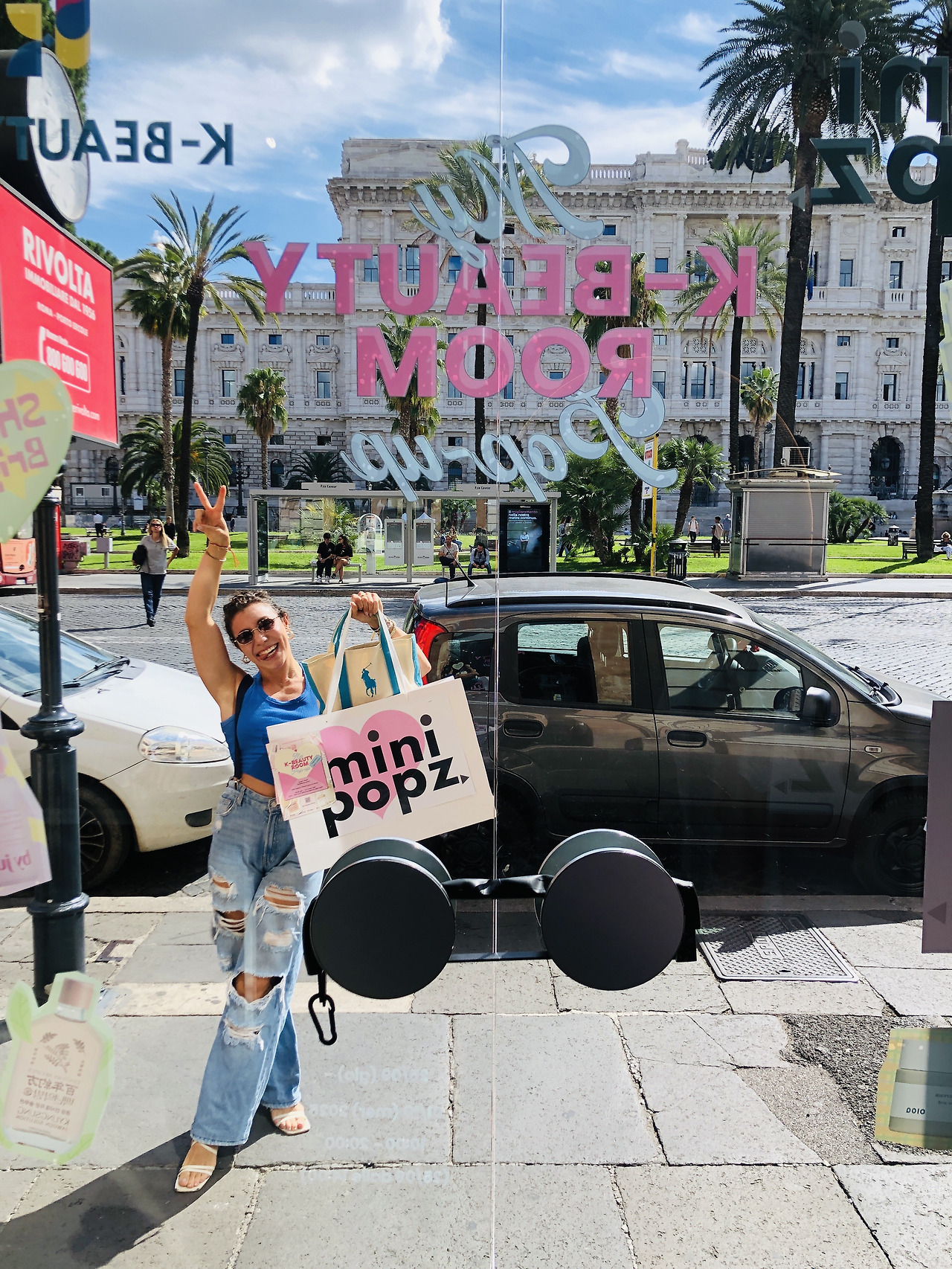 한국에서의 상영회를 진행하는 동안 사소한 일부터 크고 어려운 일까지 도맡아 해결하고 처리해 준 그녀를 위해 하나라도 도움이 되길 바라며 가족이 모두 하나라도 일손을 보탰습니다. 팝업 준비 일정부터 행사 기간 내내 팝업 장소에 출근해 할 수 있는 일을 찾아, 할 수 있는 일을 했습니다. 팝업 행사 4일 전, 늦은 밤 로마에 그녀와 미니팝츠 팀원들이 도착했을 때, 그들이 공수해온 캐리어만 15개, 로마에 보낸 박스만 40개가 넘었습니다. 비틀즈가 로마에서 초연을 했던 바티칸 근처에 위치한 로마 아드리아노 극장 한 귀퉁이의 비어있는 공간을 렌트해 일주일 동안 팝업을 열었습니다.