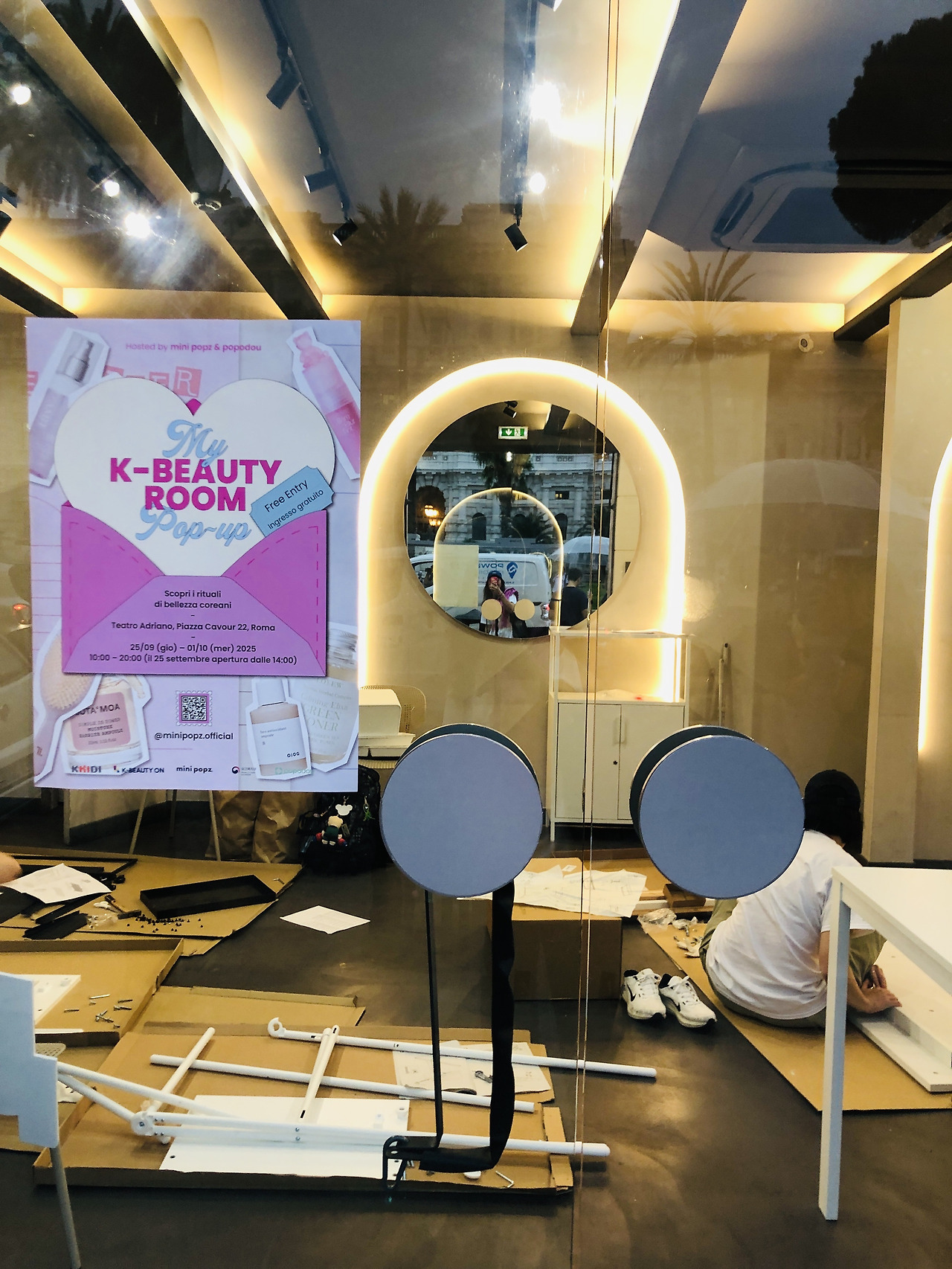 지난 8월 한국에 머무는 동안 제1회 세계 어린이날을 기념해 제작되고 우리 가족이 주연과 주연으로 참여했던 이탈리아 단편 영화 [모두의 집 : LA CASA DI TUTTI] 의 상영회를 직접 기획하였고 성황리에 마쳤습니다. 로마가족만이었다면 꿈도 꾸지 못했을 이 기획을 가능하게 해 준 친구 중 한국은 물론, 세계 곳곳에 팝업 행사를 기획하고 운영하는 미니팝츠의 김바다 대표가 있었습니다. 그녀는 이탈리아에서 k 뷰티 팝업을 열고 싶다는 생각을 하고 있었고, 그런 그녀에게 로마에서 팝업을 여는 것을 추천했습니다.