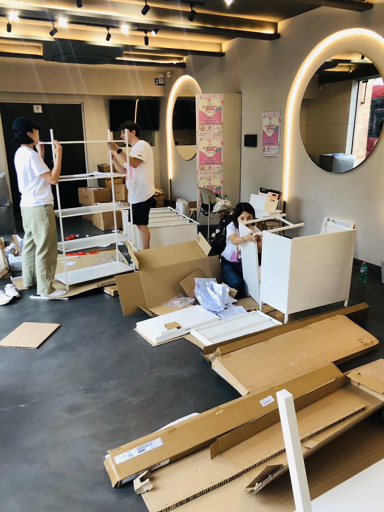 행사 이틀 전 이케아에서 가구와 집기를 구입해 밤새 가구를 조립하고 행사장을 꾸몄습니다. 방치되던 극장의 한 귀퉁이에서 뭔가를 한다는 한국 사람들에게 전혀 관심이 없었던 극장 관계자들은 며칠 만에 뚝딱 만들어지는 현장에 놀랐는지 매일 행사장을 방문해 응원을 보내주었습니다.
