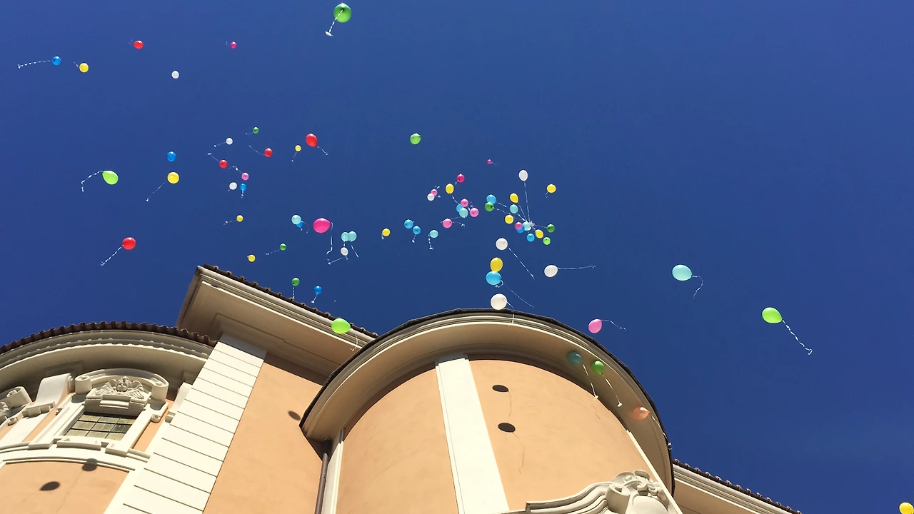 이탈리아 행사는 사실 별거 없다. 유치원복 입고 학년별로 나와 시를 외우고 노래를 한다. 이안이 아래 학년의 아이들은 울음바다가 되어 버리고 그것마저 정겹다. 우리 반 엄마들은 우는 아이들은 보며 불과 1년 전 우물쭈물 울어버리던 우리 아이들이 떠올라 뭉클해졌다. 행사 마지막엔 아이들 모두 풍선을 하늘로 뛰운다. 할머니를 할아버지를 위한 기도를 담아.