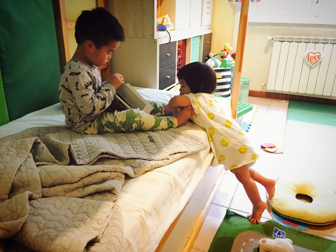 며칠 전, 아이들을 재우기 전, 씻고 나오니 거실에서 티브이를 보던 아이들이 없었다. 아이들 방에서 속닥속닥 말소리가 들려왔다.