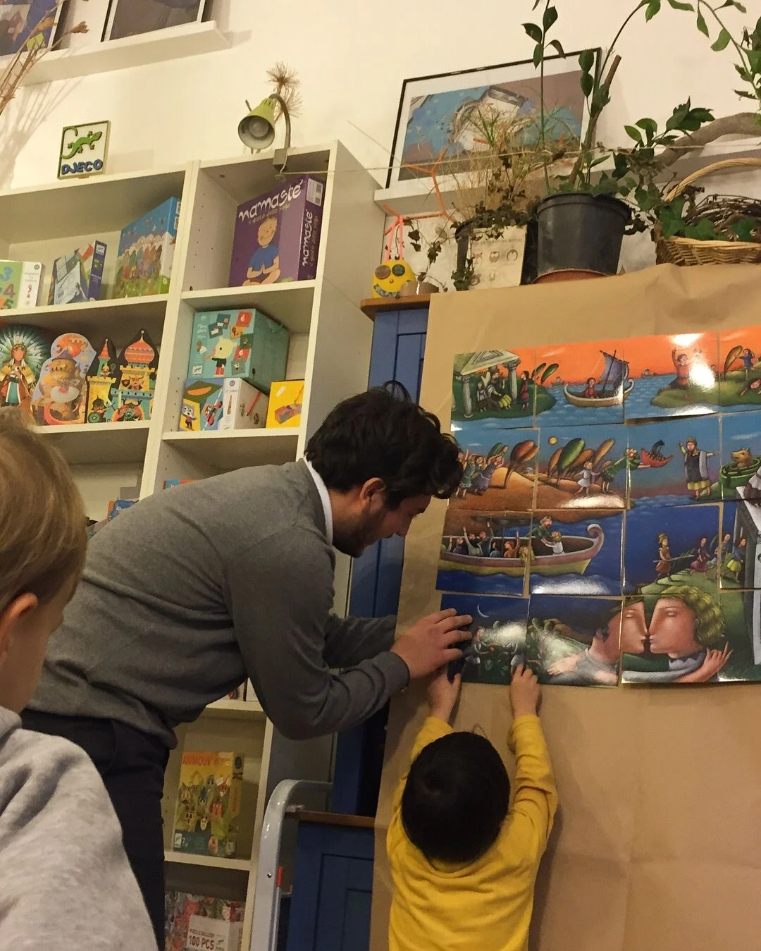 여하튼 야외 행사는 많지만 작은 규모의 실내 문화 활동의 기회를 접하기가 쉽지 않은로마에서 동네 어린이 서점에서의 매주 행사는 아이에게도 나에게도 참 즐거운 시간이다.(책을 읽어주는 시간은 무료이며 만들기 등의 다른 특별 활동이 더해지면 참가비가 있는데 보통 5유로(6천 원) 정도다.)