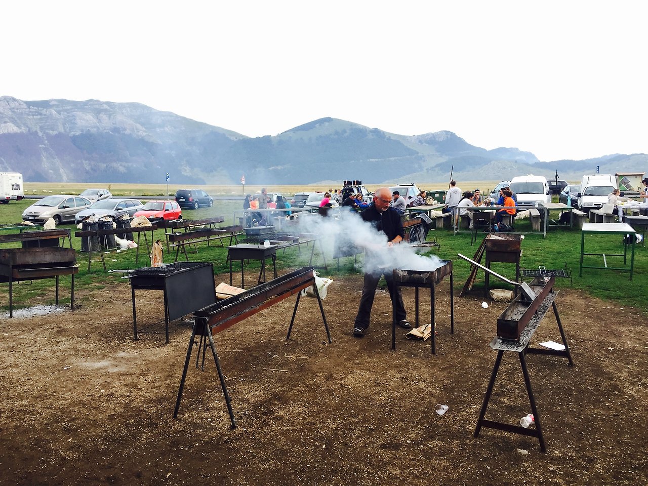 말에서 내린 소녀는 할아버지와 춤을 췄다. 어느 산봉우리, 푸른 하늘 아래 이름 모를 밴드가 음악을 연주하고 있었다. 아무것도 없는 산속에 우리가 만난 것은 놀랍게도 양꼬치였다. (아브루초 주(Abruzzo)는 양꼬치가 유명한다. Arrosticini(아로스티치니) 라고 부른다.) 끝없이 꼬치를 굽는 숯불이 이어져있었다. 작은 오두막이 정육점이었다.