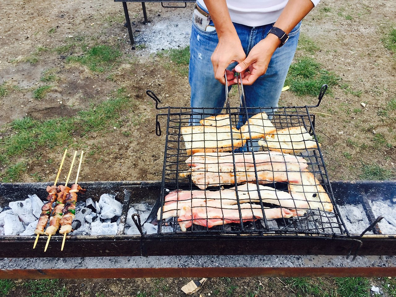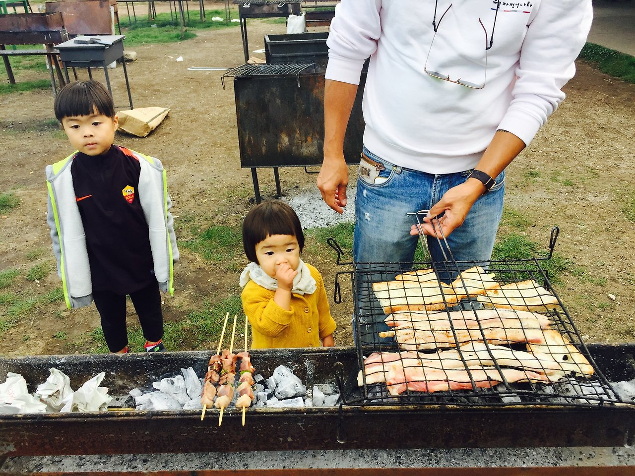 삼겹살, 청량고추가 끼워진 간, 양꼬치, 살시체 원하는 만큼 주문했다. 청명한 바람을 타고 흐르는 밴드의 노래를 들으며 숯불에 꼬치를 구웠다. 대부분의 사람들은 미리 고기를 사 온 듯했다. 숯을 사용하는 것은 무료였다.