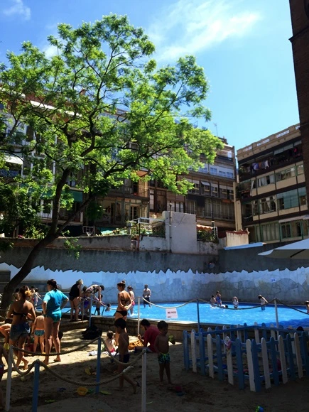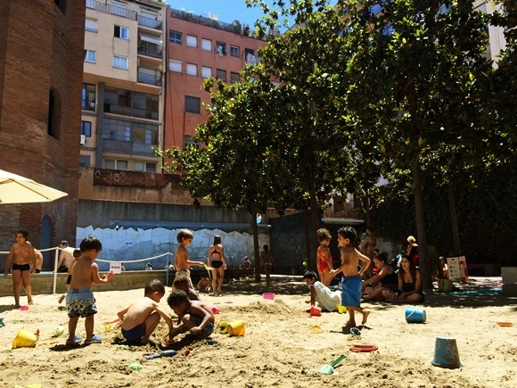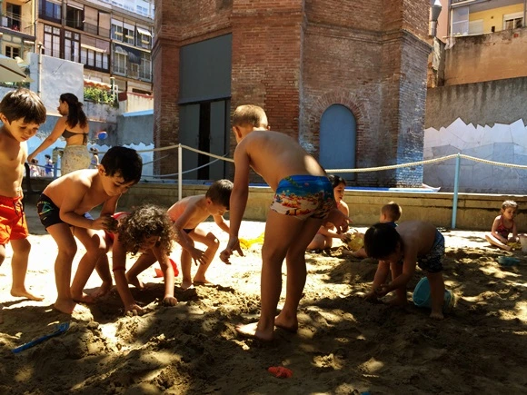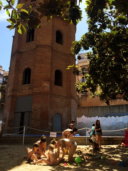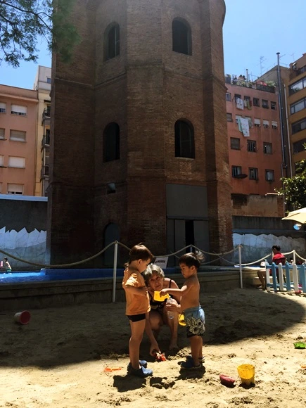 빛에 도달하자 갑자기 누가 볼륨을 높인 듯 스페인말로 재잘거리는 아이들의 목소리가 압도하듯 덮쳤다. 1870년 에 만들어진 저수조가 탑처럼 서 있었다. 그 아래 아이들이 놀고 있었다. 수영장 밖은 온통 모래사장이었다. 누가 이 많은 모래를 가져다 놓았을까? 입장료는 1.55유로였다. ( 글을 쓰면서 2019년 가격을 다시 찾아보았다. 1.60유로였다. 2016년 이후 3년간 0.05 센트가 올랐다.) 모래사장에는 주인을 알 수 없는 놀이도구들이 사방으로 박혀있었다. 나의 아이는 금세 스페인 아이들과 섞여버렸다.