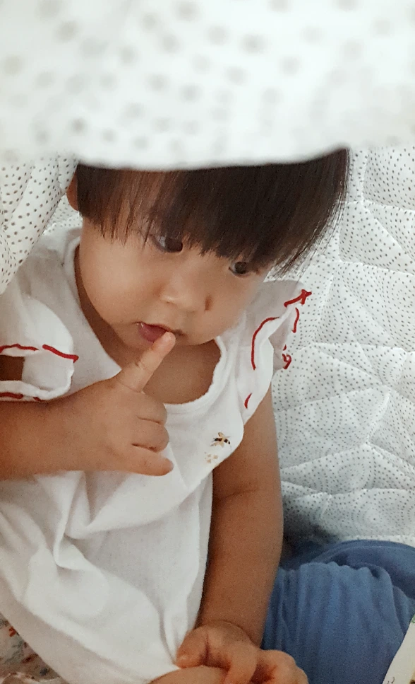 둘째가 언젠가부터 "쉿!"이라는 말과 손짓을 배워서는 이불 속이든 옷장 안이든, 세탁실이든 숨어들기만 하면 "쉿!"하고 나에게 주의를 준다. 그래놓고는 제가 더 못참고는 큰 소리를 내거나 웃어버리지만, 그마저도 정말 사랑스럽기 그지없다.