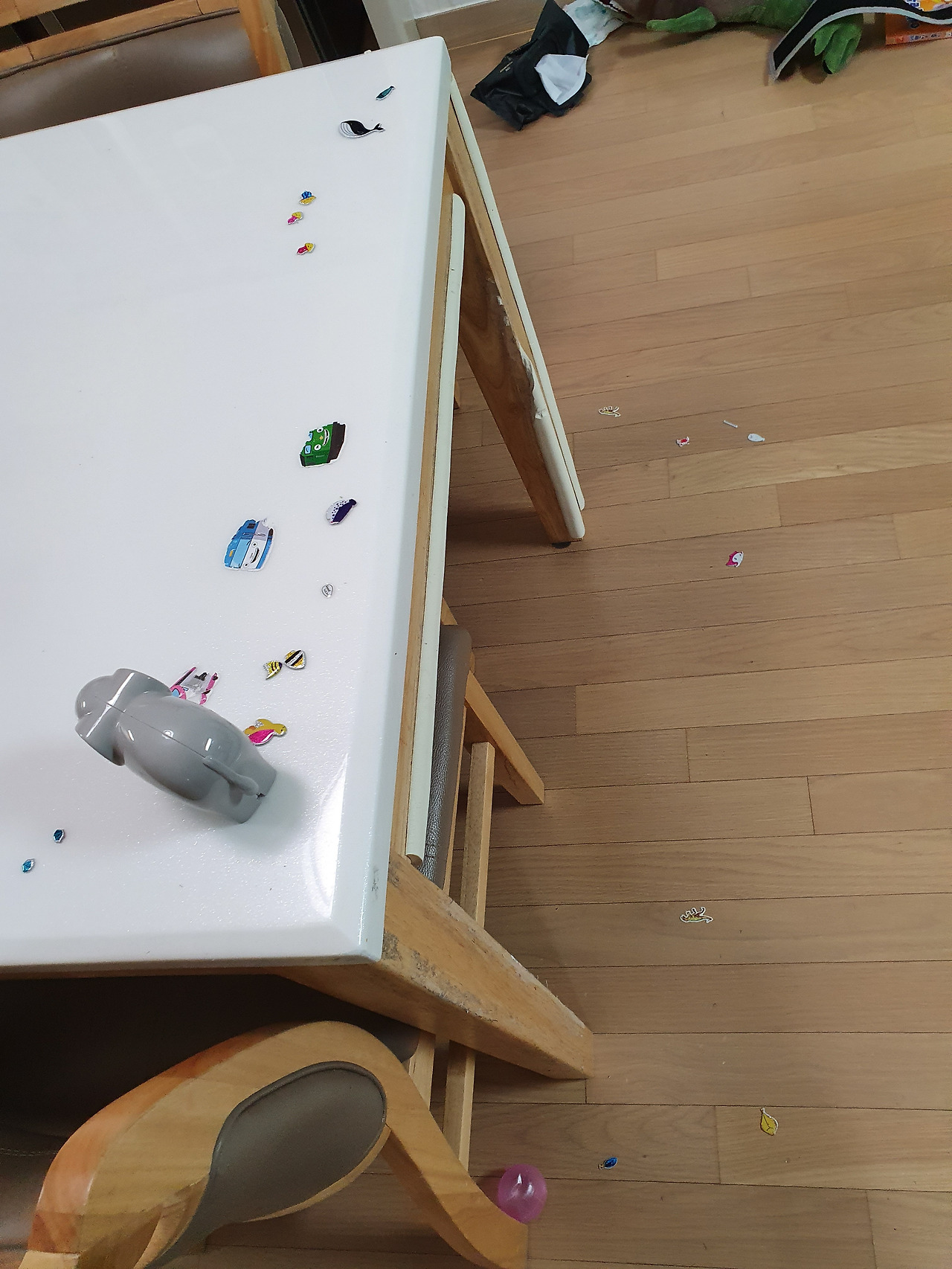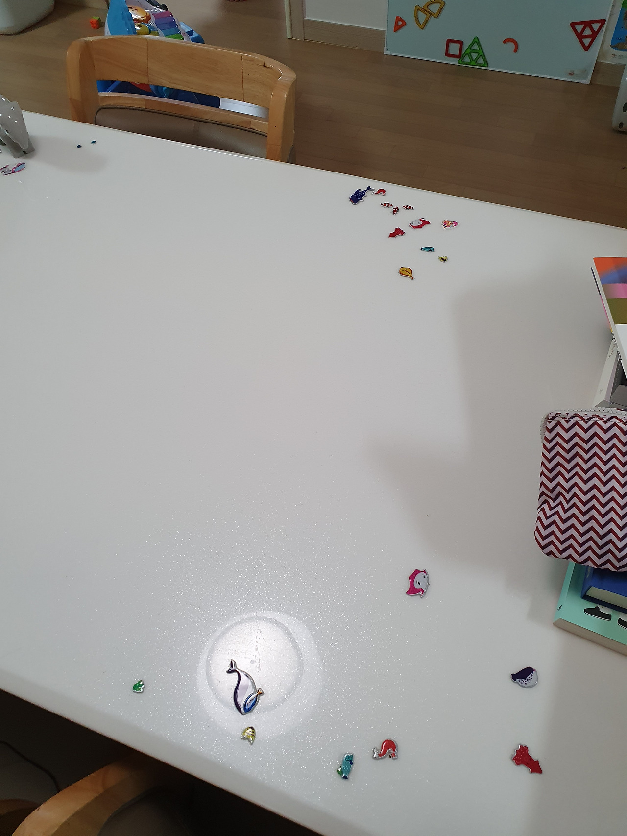 먹으라는 밥은 안 먹고 식탁을 수족관으로 만들어 놓았다.