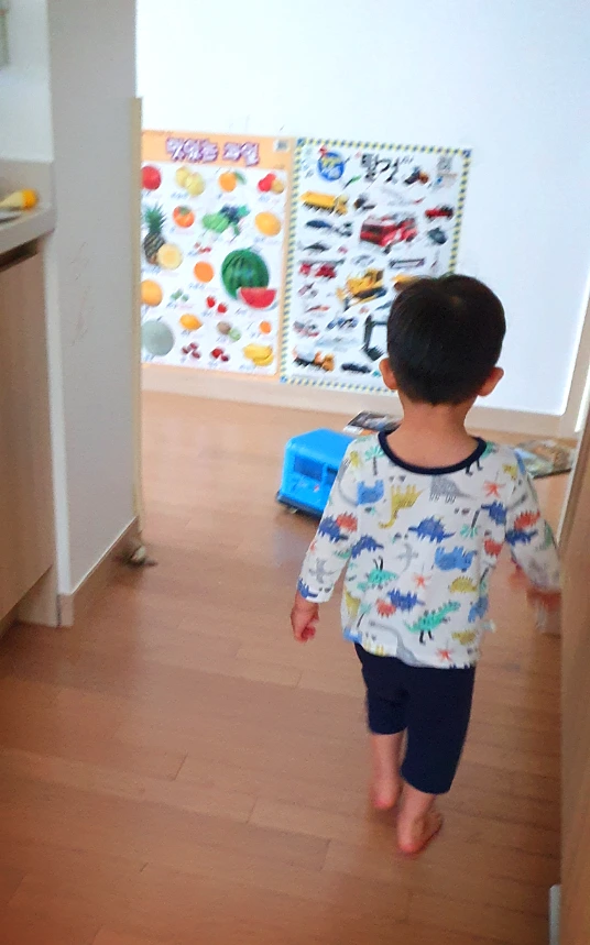나도 모르게 자꾸만 아이를 치켜세웠다. 그리고는 잠들기 전 긴팔 옷으로 갈아입는데 다시 한번 혼자 입어보라고 했더니 사랑이는 이내 다시 아기 모드가 되어서는 "엄마가 입혀줘, 입혀줘야지" 하며 다리에 매달렸다. 결국 팬티와 바지는 혼자 입고, 윗옷은 내가 목에 끼워주기만 하고 소매는 혼자 찾아서 팔을 끼워 입었다. 어설프긴 해도 조금씩 혼자 할 수 있도록 계속해서 기회를 주는 것이 엄마인 내가 할 수 있는 일일 테니.