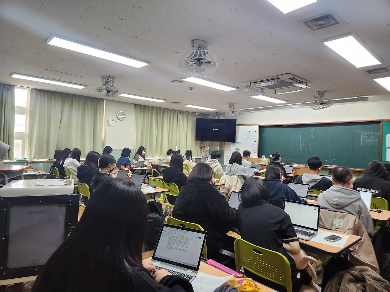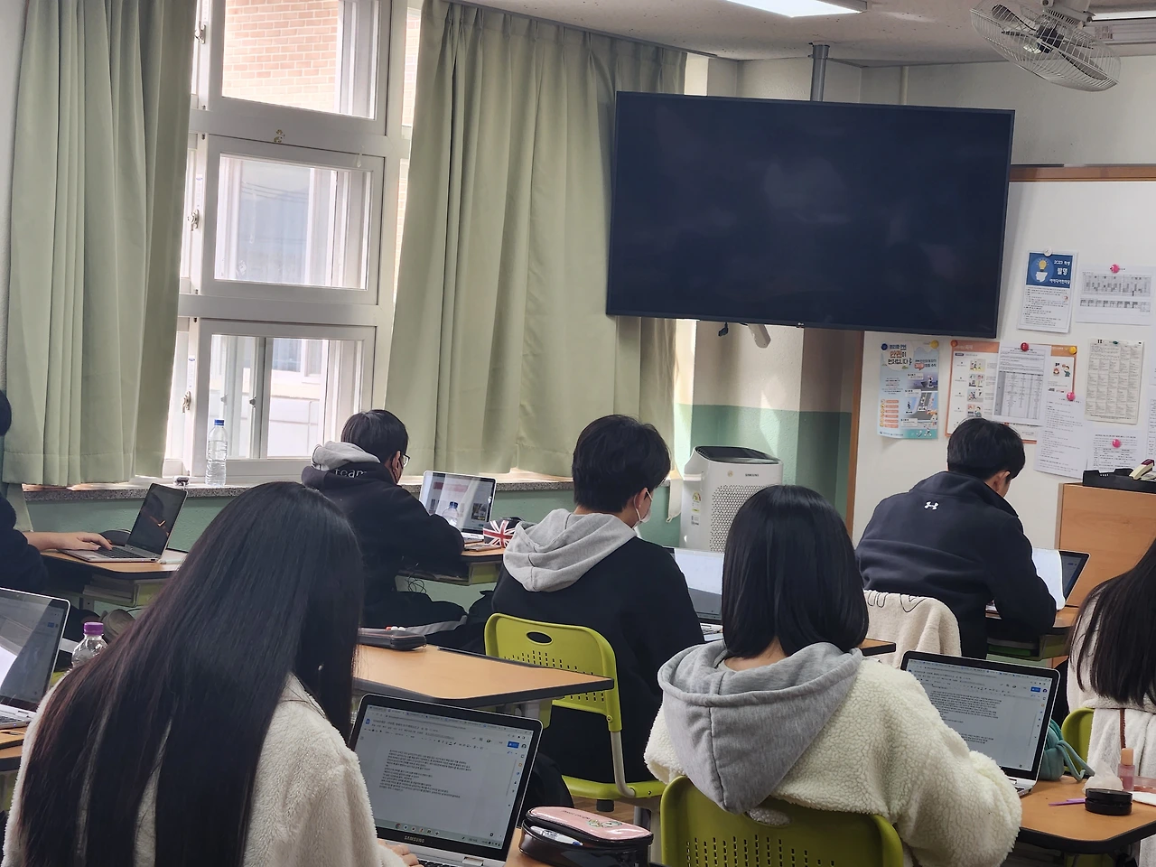 교실에는 대답 소리 대신 크롬북의 자판을 두드리는 소리만 가득했다.