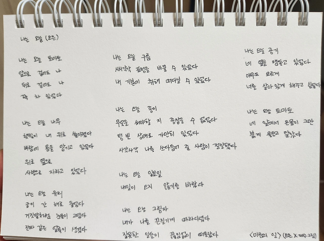 아이가 일찍 잠든 일요일 밤, 이번주에 곱게 써서 배달할 시들을 골랐습니다. 집에 있는 시집도 뒤적여보고, 평소 눈여겨보던 시인의 시를 소개한 인터넷 사이트도 살펴봤어요. 예전에 필사했던 시필사노트도 찾아보고, 시를 소재로 한 에세이들도 훑어봤습니다.