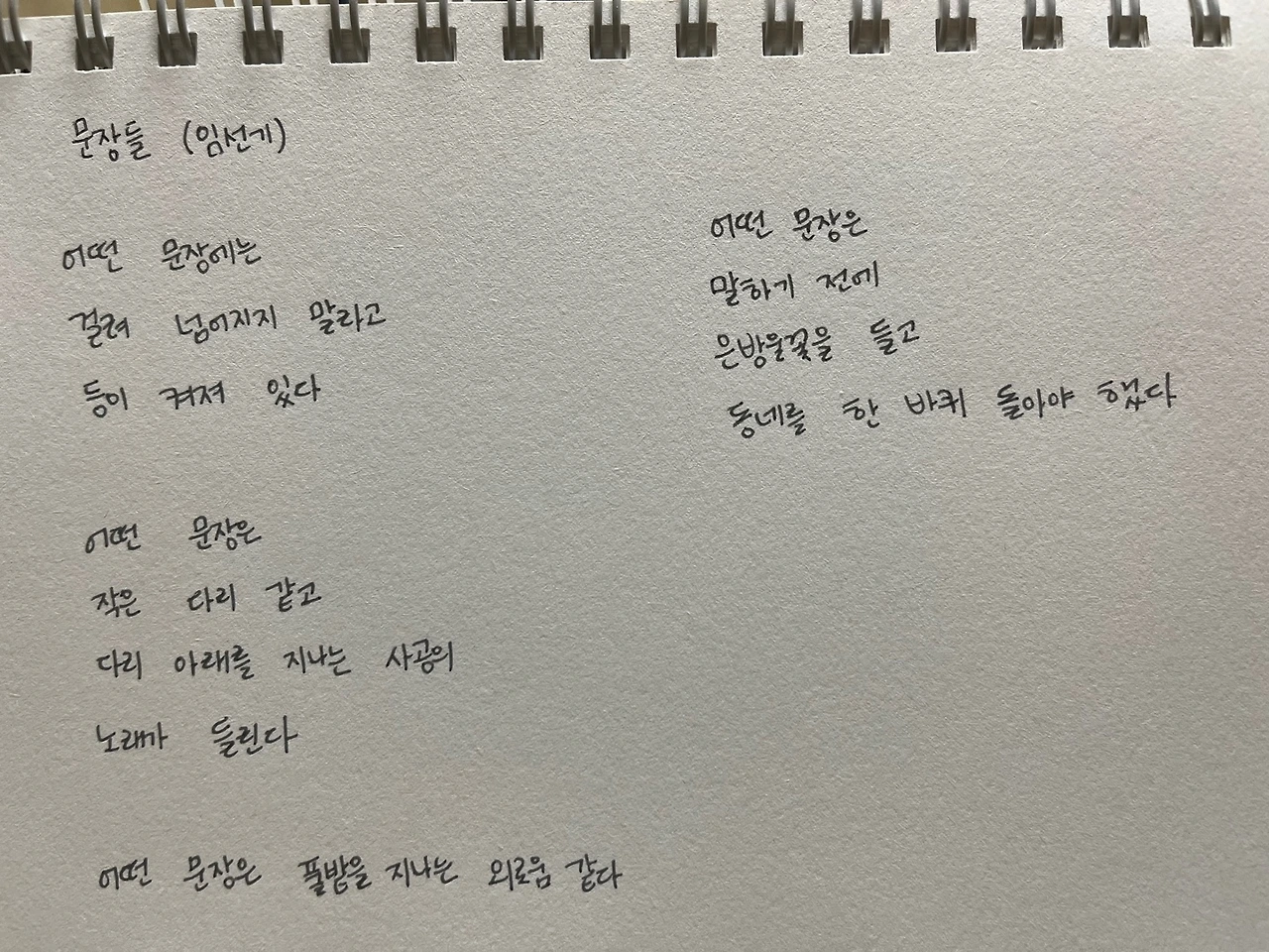금요일에서 토요일로 넘어가는 늦은 밤입니다. 무사히 일주일을 보내고, 잠시 쉬어가는 밤의 시작입니다. 이미 지나간 문장들에 매어둔 마음이 있으시다면, 잠시 내려놓고 쉬어가시는 것도 좋을 것 같아요. 돌이킬 수 없는 문장은 지난 시간으로 넘기시고, 새롭게 태어날 문장에 온기와 사랑을 가득 불어넣는 주말 되시기를 진심으로 바라겠습니다.
