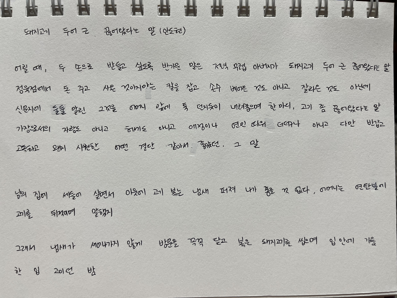 돼지고기 두어 근 끊어왔다는 말(안도현)