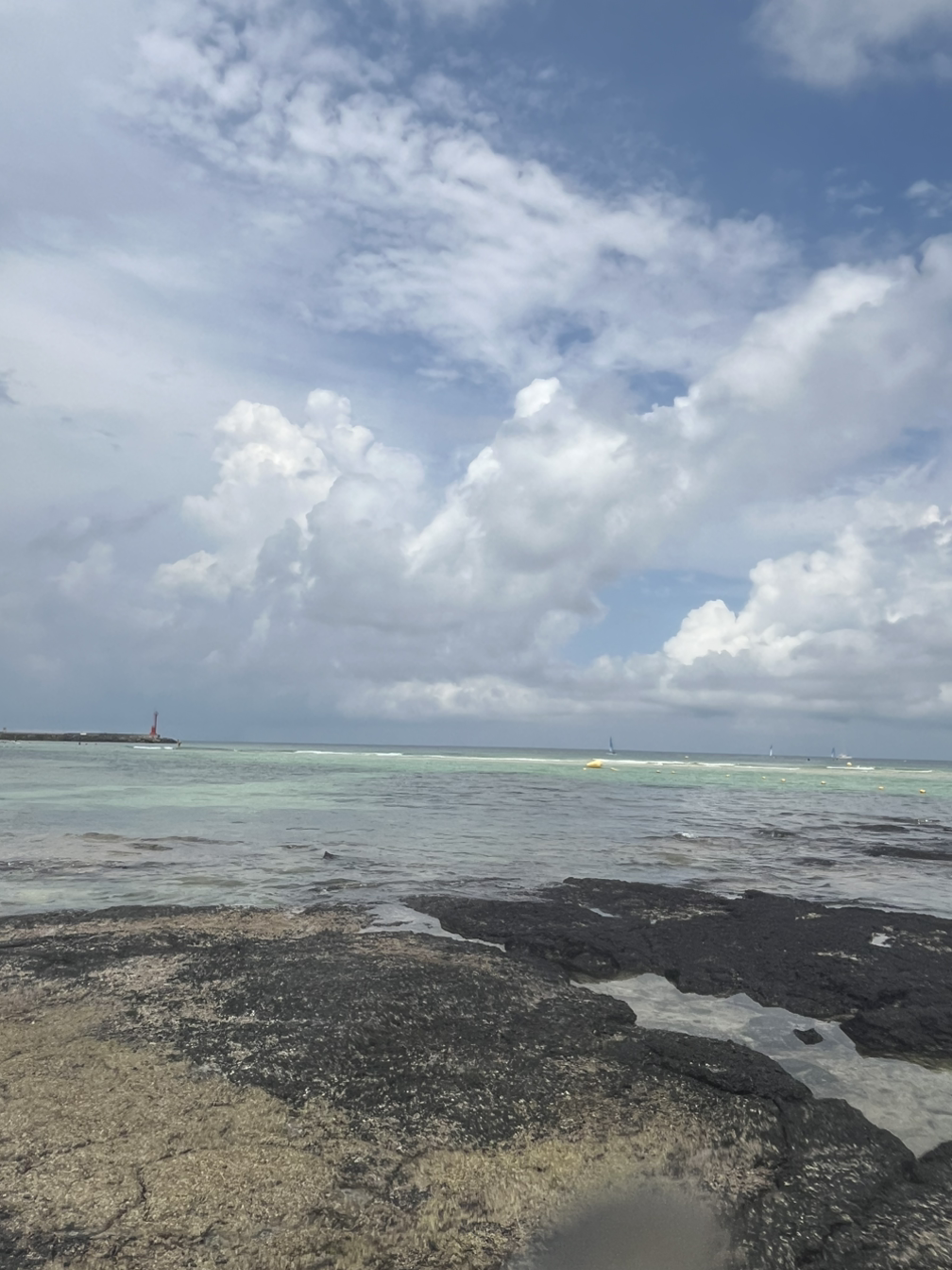 멀리 김녕 바다가 보이기 시작했다. 그런데 ‘어랏?’ 서서히 빗줄기가 약해지는 것이 아닌가! 저 먼바다 위로는 푸른 하늘이 빼꼼, 고개를 내밀고 있었다. 진짜 비가 그치려나, 기대하며 서서히 주차장에 진입했다. 짐을 내리는 잠깐 동안만 가는 빗줄기가 이어졌고 이후 바다에서 보낸 3시간 동안 비가 오기는커녕 먹색 구름도 흔적을 감추었다.