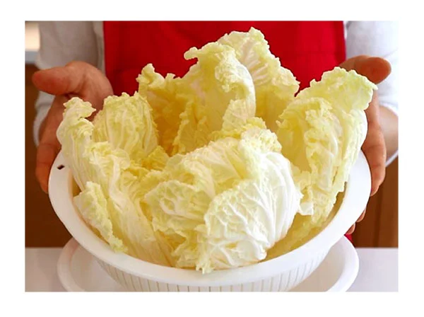 1. 배추에서 노란 속잎만 골라서 씻은 뒤 물기를 뺀다.
