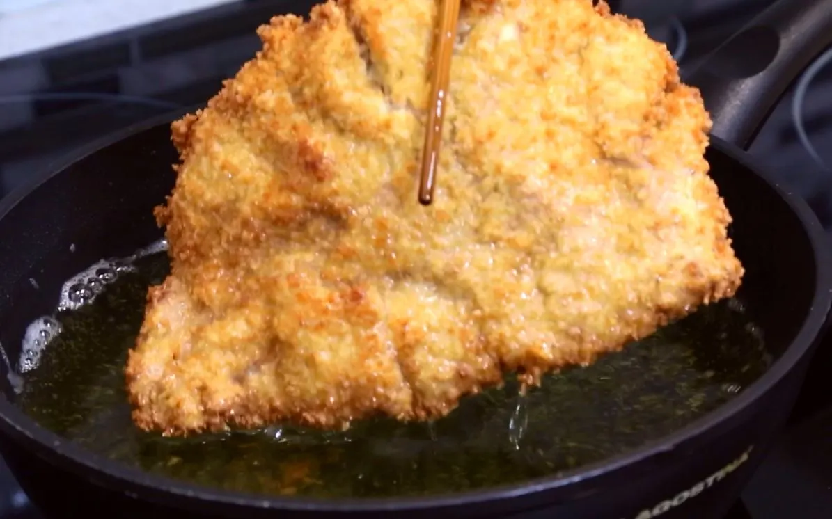1. 돈가스를 튀길 때 한 두 번 정도, 공기 중에 고기를 들었다 놓아주세요. 그렇게 하면 수분이 날아가 더 바삭하게 튀겨집니다.