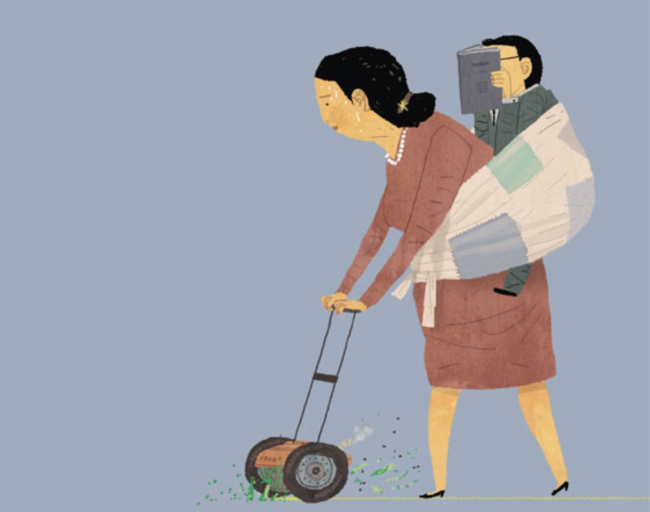 우리나라 어머님들의 모성애는 대단합니다. 그런데 그 사랑은 며느리는 쏙 빼고 내 자식의 잔에만 차고도 넘치며, 그 사랑의 힘이 질기다 보니, 이미 태어날 때 잘린 탯줄을 아들이 성인이 돼서도 부여잡고 놓질 못합니다. 한번 아들은 영원한 내 아가인 것이죠. 그렇다 보니, 엄마 마음은 늘 노심초사 아들 걱정입니다. 못 미더워 잔소리를 해야 하고, 아들 부부 사이에 끼어들기를 즐기며, 심지어 손주들의 육아까지 간섭합니다. 손주의 경우는 ‘내 자식의 자식 = 내 새끼’라는 논리를 세워 옷 입히는 것, 아이의 교육까지 참견을 하는 것이죠. 일부 엄마들은 다 큰(심지어는 늙어가는) 자식의 잔디 깎기 맘 노릇을 자처하기도 하고요.
