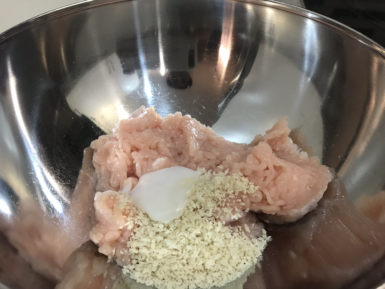 1. 재료를 볼에 넣고 잘 치대 주세요. 코코넛 오일은 다른 오일로 대체하셔도 됩니다. 고기가 차가울 경우 코코넛 오일이 굳을 수 있습니다. 그럴 때는 손으로 문질러주면 잘 녹으니 걱정 마시고요.