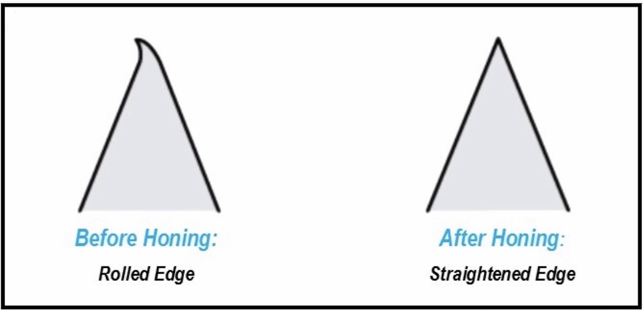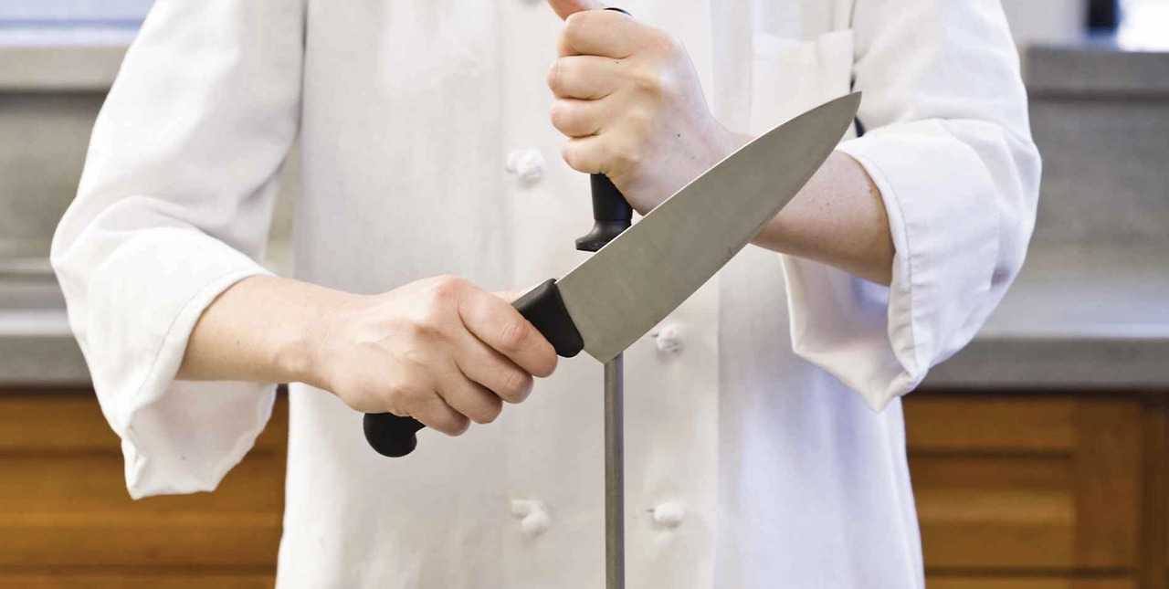 셋째, 칼은 갈아줌과 동시에 발란스도 잡아줘야 합니다. 도마에 칼이 닿을 때마다 주어지는 압력으로 인해, 칼날이 한쪽으로 휘게 되거든요. 셰프들이 샤프닝 스틸(sharpening steel)이라고 불리는 봉을 들고 칼을 가는 이유는 기울어진 칼날을 바로잡기 위해서입니다. 이렇게 하는 것을 영어로는 Honing이라 하는데, 사전을 찾아보니 '호우닝'이라고만 돼 있네요. 아직 적절한 우리말이 없는 것 같습니다.