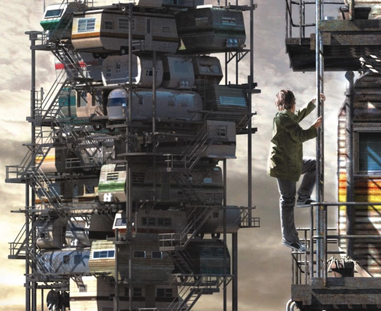 영화 <레디 플레이어 원(Ready Player One)>에서 그린 인류의 미래는 환경 오염으로 식량이 고갈되고, 넘쳐나는 쓰레기로 살 공간 또한 부족한 디스토피아 그 자체입니다. 겹겹이 트레일러를 올려 만든 주거 공간은 당장 무너질 것 같아 불안해 보이구요. <월 E>에 나온 미래 세계엔 청소 로봇이라도 하나 있었고, <블레이드 러너>에서는 싸구려 먹자 골목이나마 등장 했지만, 그곳엔 잔뜩 쌓아 놓은 쓰레기와 그 쓰레기를 타고 넘나드는 사람들만이 있을 뿐입니다. 그야말로 끔찍한 미래이며, 영화 속 인물들이 왜 현실을 피해 게임이라는 도피처로 은신하는 지 이해가 갈 만한 상황입니다.