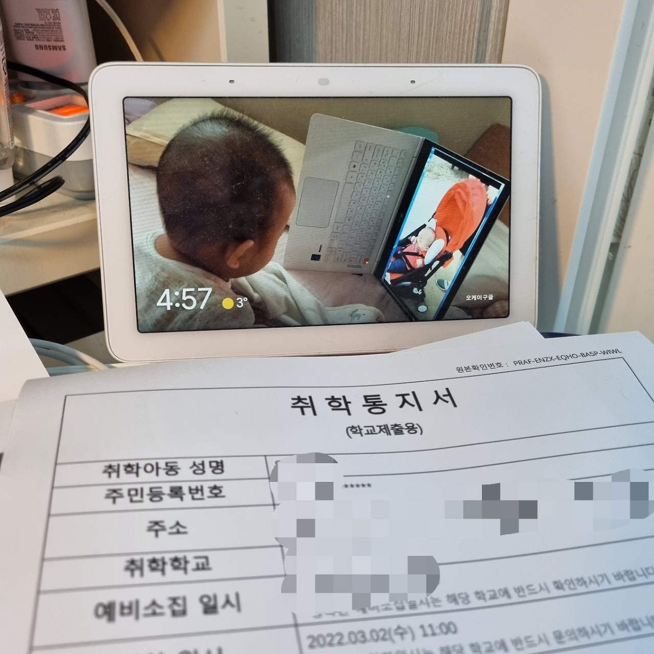 내 아기의 취학 통지서