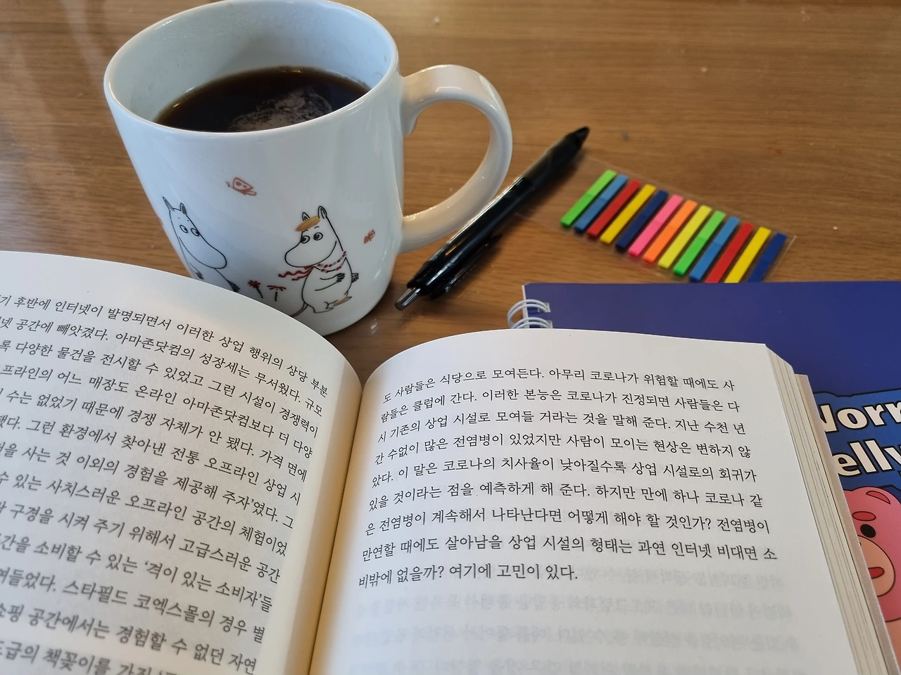 그렇게 전자책으로 먼저 찾아 읽어보고 정말 좋다고 판단이 되면 그 책은 반드시 구입한다. 찬찬히 책장을 넘기며 다시 읽고 내용을 꼭꼭 씹어 먹어 보는 것이다. 책 읽을 때 늘 함께 하는 알록달록 인덱스 테이프와 필사 노트를 옆에 두고 기억하고 싶은 내용을 펜으로 눌러 적어보기도 하면서 말이다.
