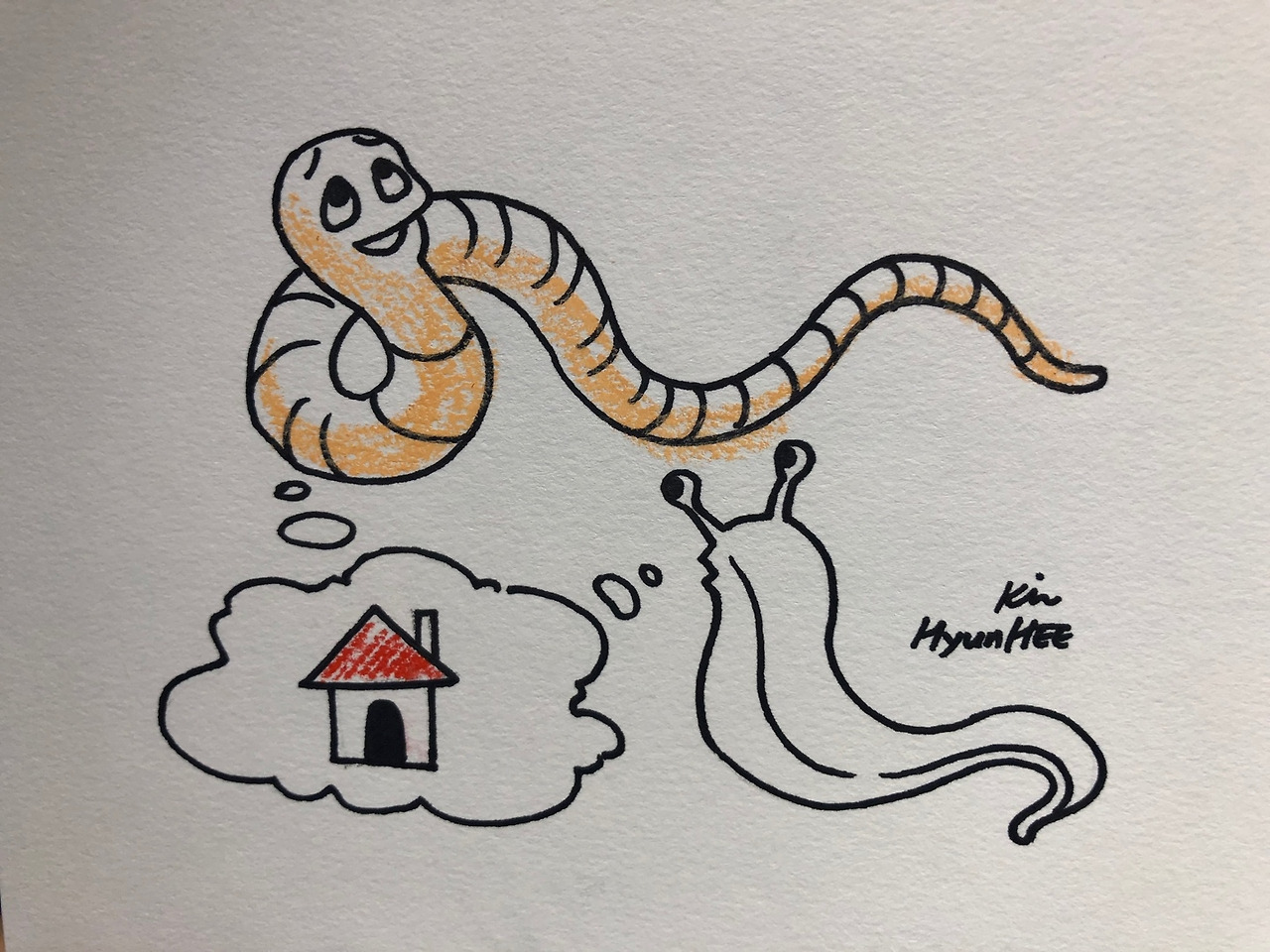 “미안해 널 찌르려고 한 건 아니었어” 은유는 지렁이의 얼굴에 대고 사과했다.